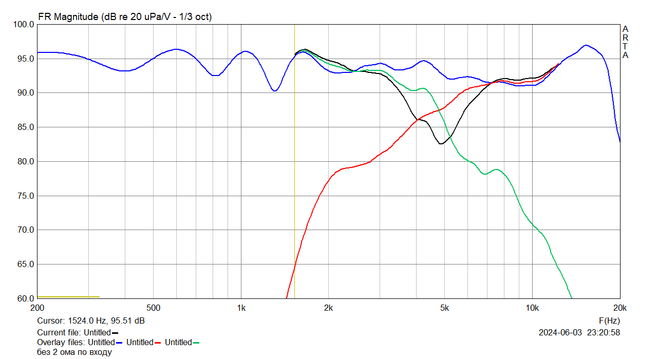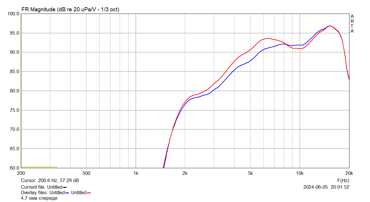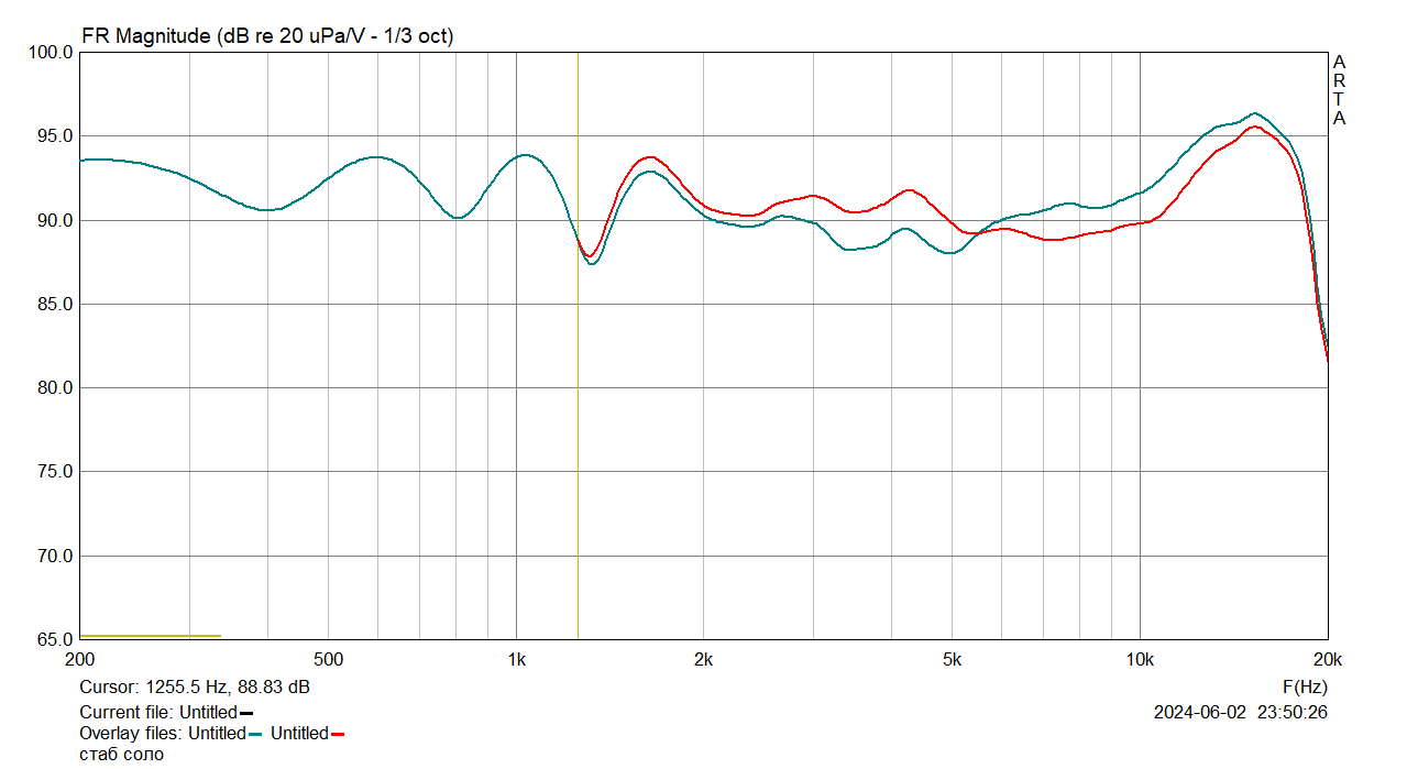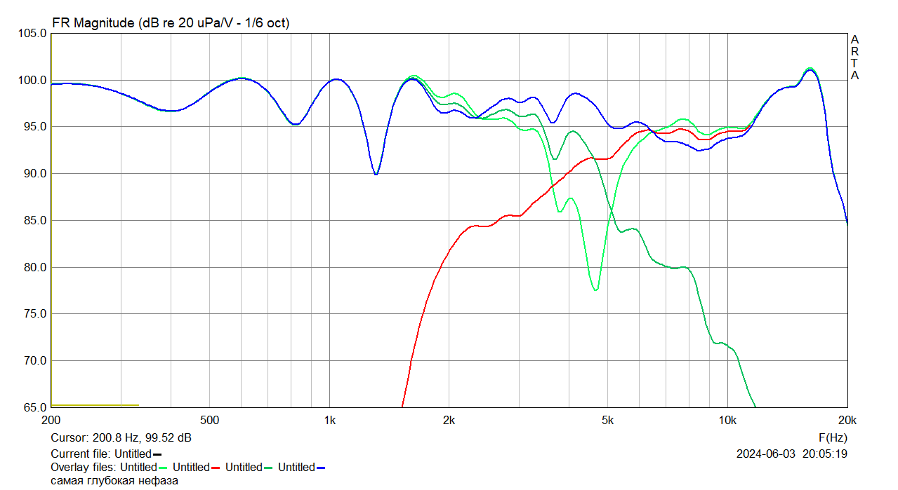 Видим, что во втором случае влияния оси нет выше 6,5 кГц, в то время как в первом есть заметное влияние выше 5,5 кГц.