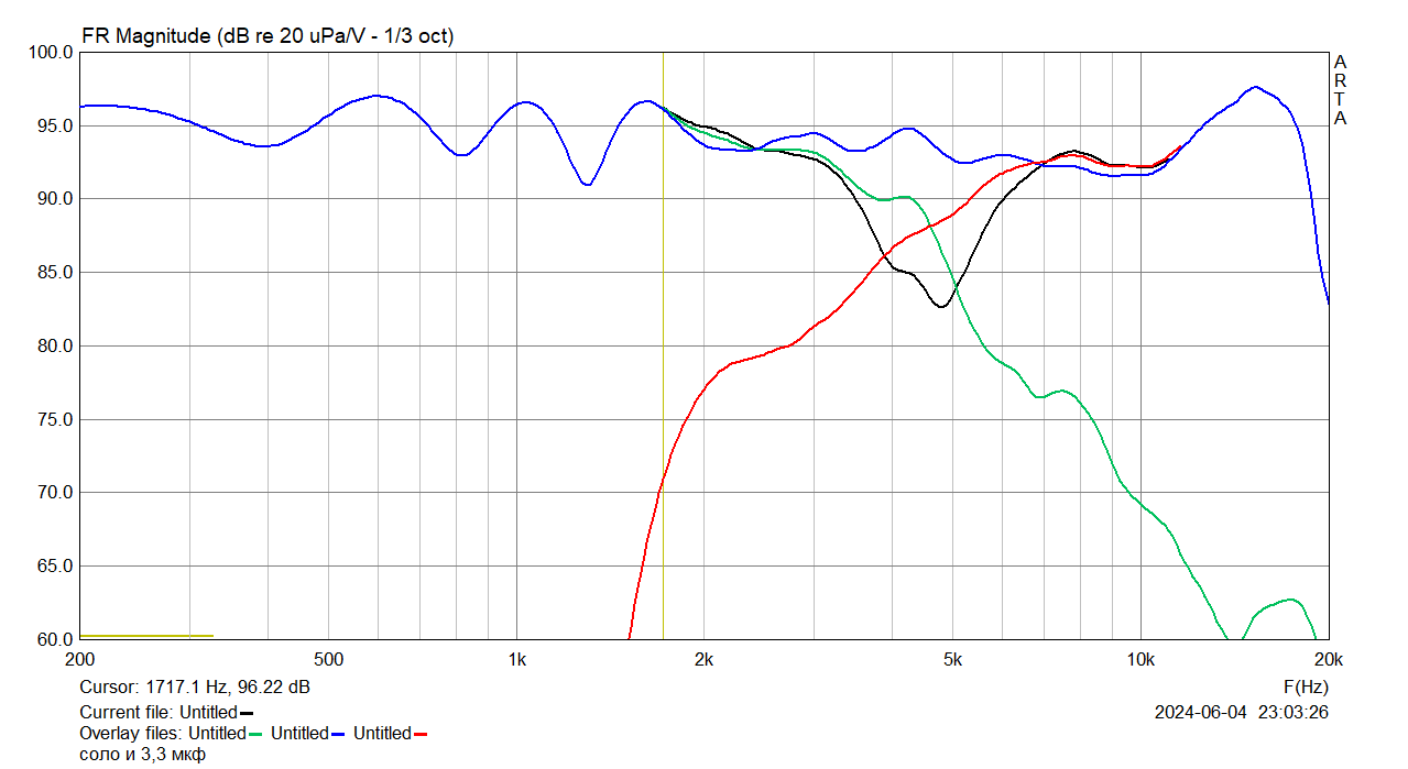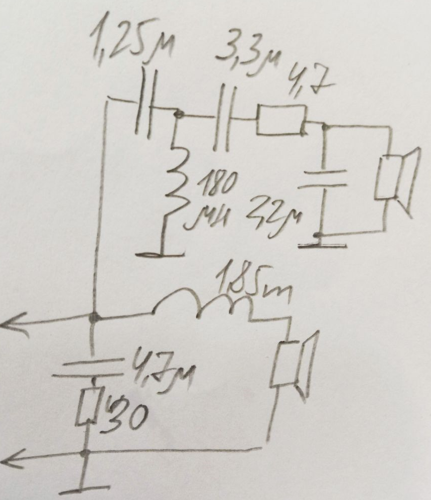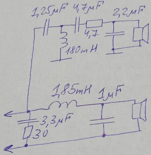 с 3 мкФ в параллель ВЧ динамику: немного приглушённо. Потому уменьшил 3 мкФ до 2 мкФ, но отслушать не успел.