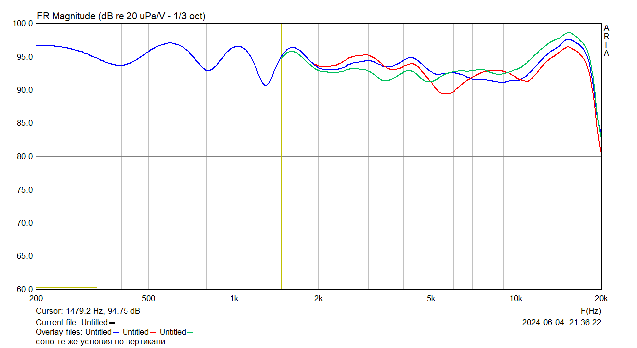 Вот нефазы по оси НЧ и по оси посередине между динамиками для катушки соло: