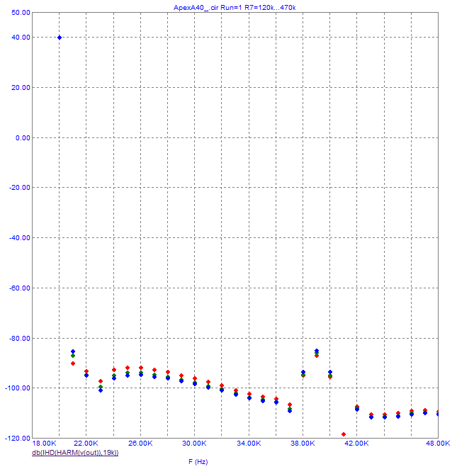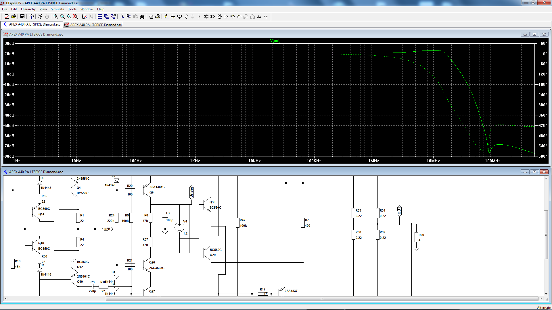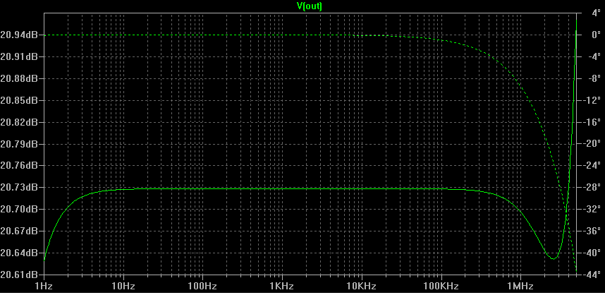 Второй график - отдельно АЧХ выходного каскада. Видим его горб.