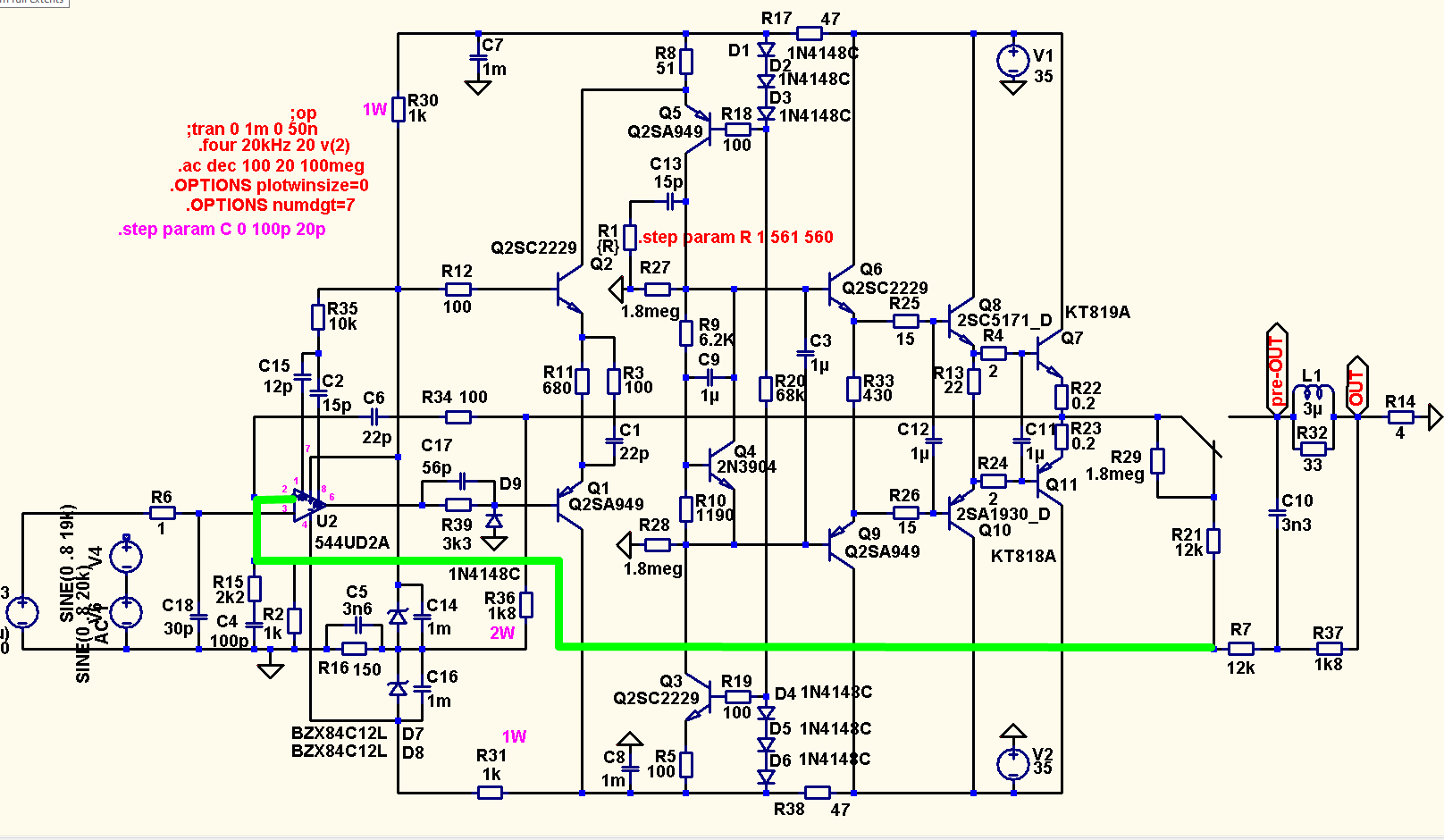 Петровский усь. Шесть идеальных элементов не пожалел Петров на своё детисче. Вроде, без ООС и потому фазу двигать не будет, думает Петров и рассказывает это всем. Но паразиты транзисторов и конденсатор С3 10 пФ на выходе не дремлют: