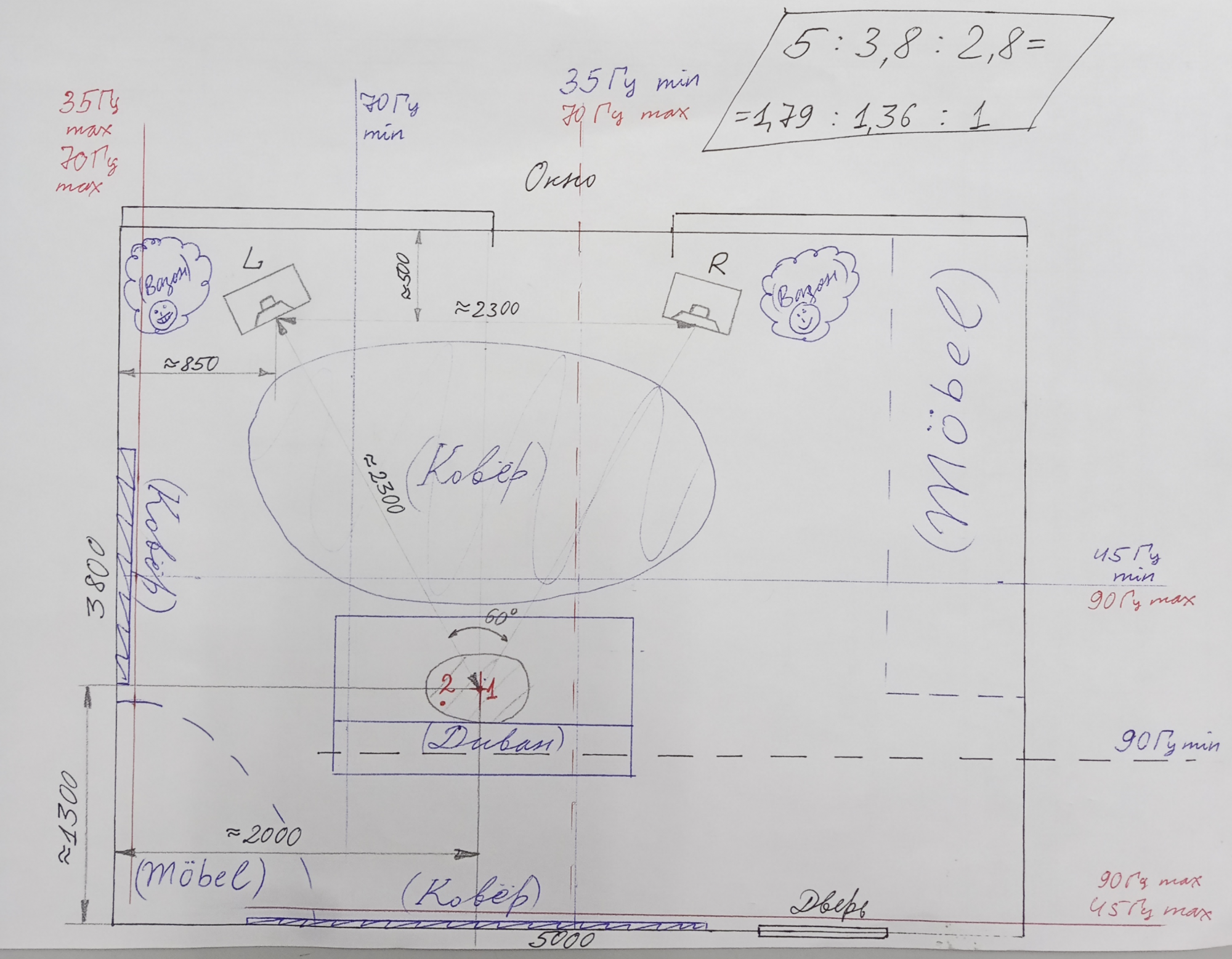 Нарисуйте план Вашей комнаты с расположением Вас и АС, в метрах. Прикинем, что снизу делать можно, а что - не надо )
