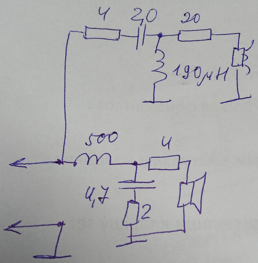динамик 2. 50см по центру между динамиками.номиналы мсопротивлений 4.7 2.2 22 ом
