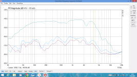 Если я правильно понял, расстояния от микрофона сверху - вниз: 10,50,100 см. Верхний график получается почти в упор (в упор было бы лучше) и показывает потенциальные возможности динамика на НЧ с сильно ослабленным эффектом АКЗ - акустического замыкания.