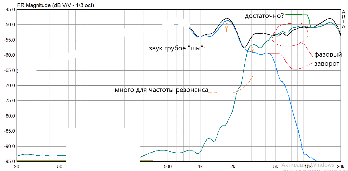 Ниже пример на другом динамике - без фильтра и с одним конденсатором, неоптимальный фильтр просто для пробы.