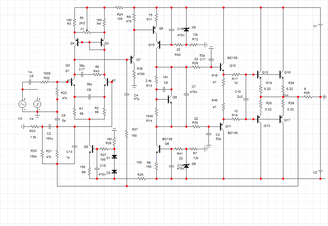 Это только идея, без подробностей. ООС, на рисунке не показанная, конечно, нужна. Вогнать транзисторы в режимы, конечно, тоже нужно.