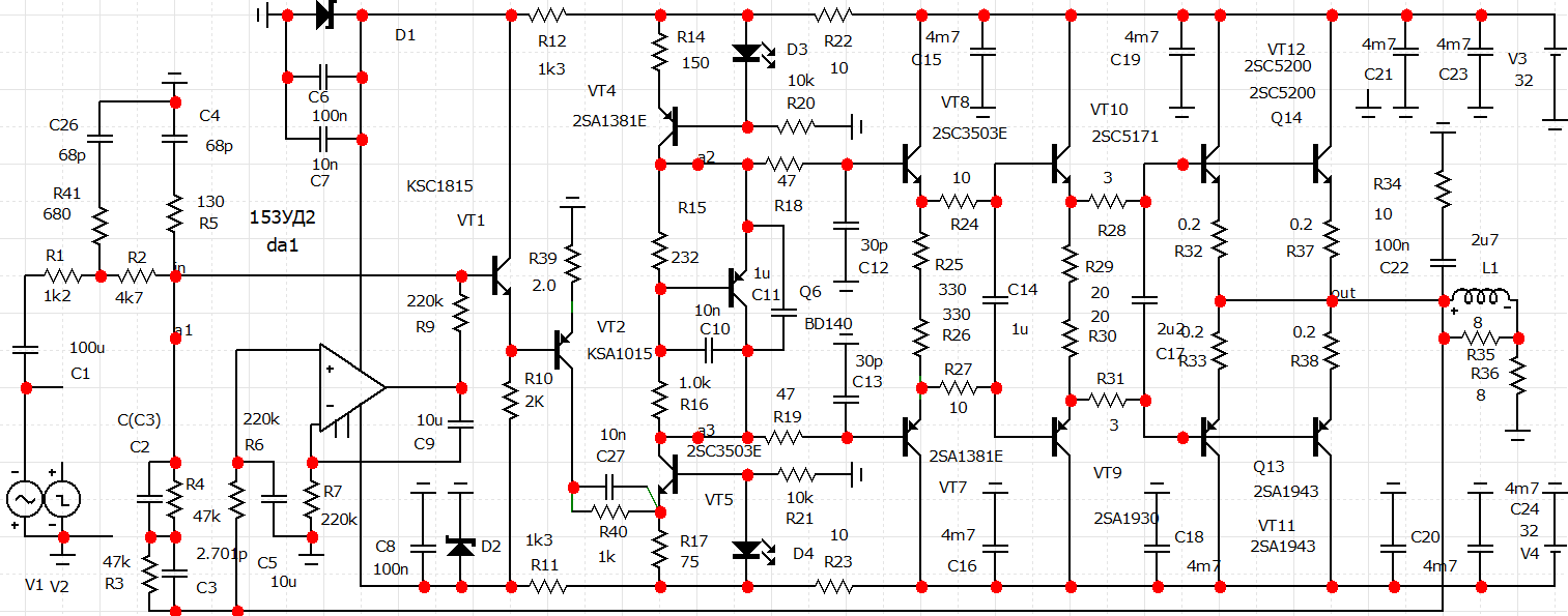 Выкинул все лишнее и электронную защиту ,два электролита в входных транзисторов и на входе км 2,2мкф ,оставил только электронный ток покоя на оптотранзисторе,по звуку для меня лучше и не надо ,могу весь день слушать и нет утомляемости хоть СД ,винил кассеты бабины ну и с компа.