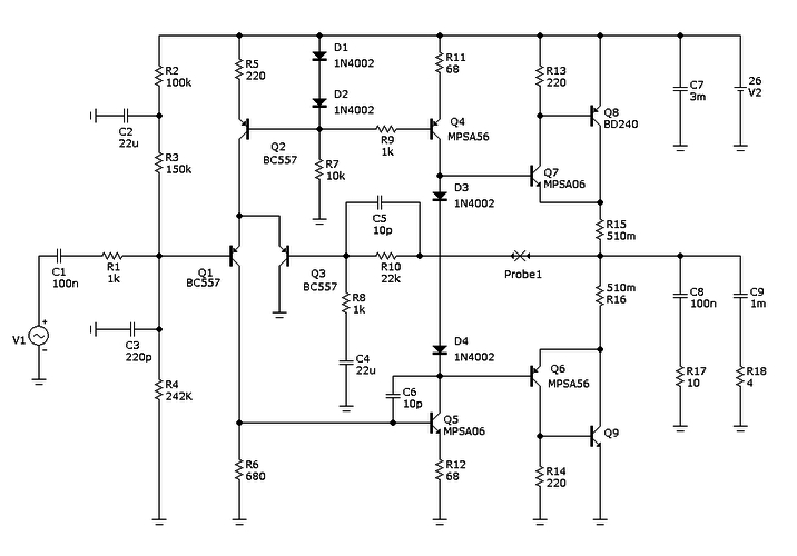 Валындался я в своё время с этой схемой. В общем по моим рассчётам выходит что если из неё выкинуть половину транзисторов то работать она станет только лучше.