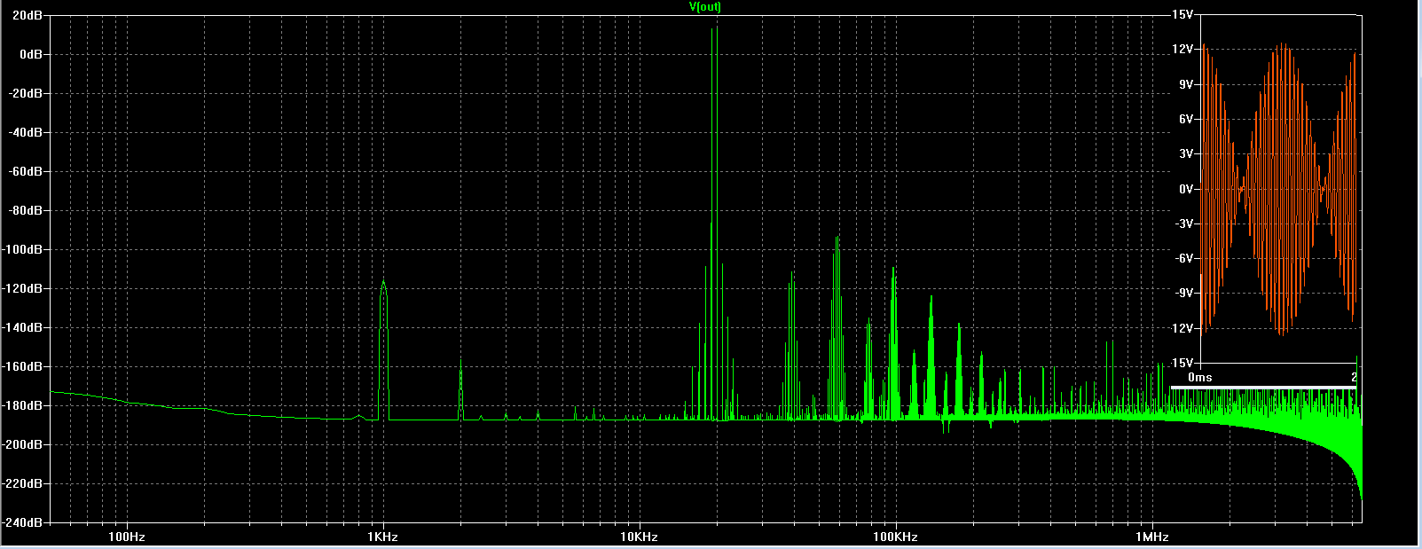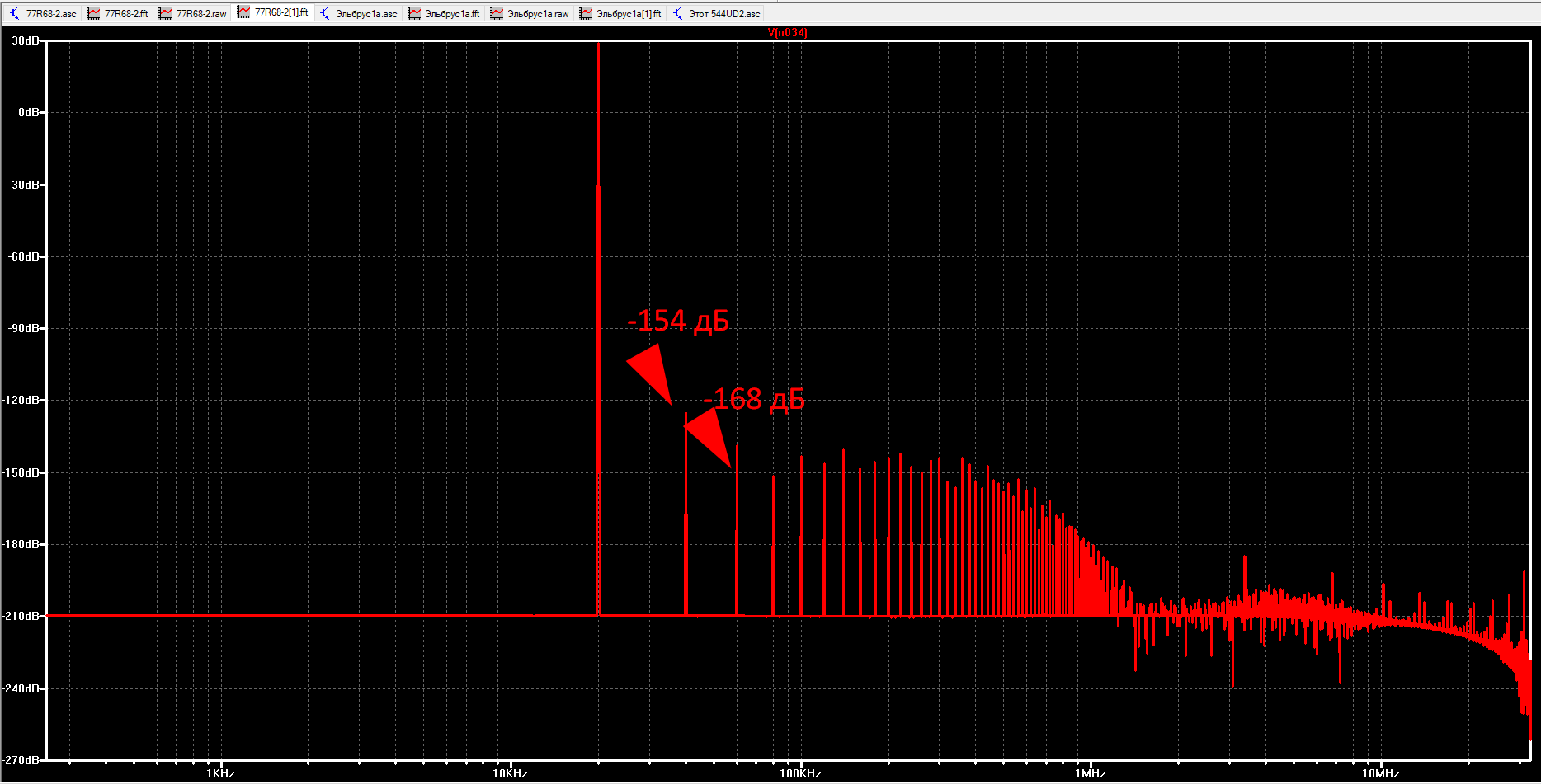 Итого. После правки коррекции , даже с диодами в эмиттерах, удалось получить вот такой спектр: