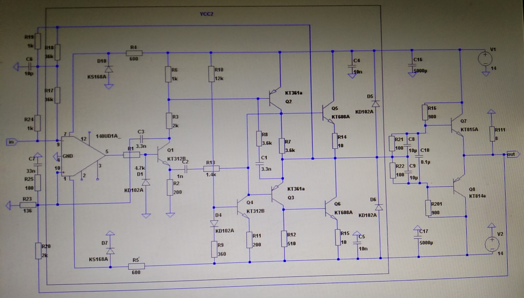 НЕУЛО, а тебе удалось вчера симуль МОДУЛЯ запустить, чтоб и на входе синусоида сигнала, и на выходе синусоида выхода, да ещё посредине питания ?