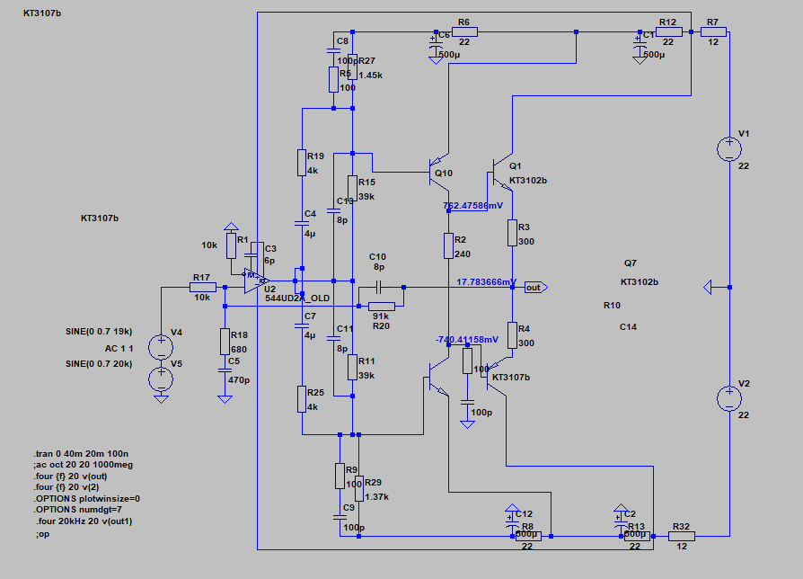 - Раньше я их не ставил в симе, и не потому что не знал их важности, а просто было не до них. да и хотелось посмотреть, как будет работать схема без них, тем более что, у меня тогда был мелкоосник, там условий для возбуда было мало. Другое дело, когда на входе стоит ОУ, здесь конечно они нужны и просто необходимы, это я понимаю.