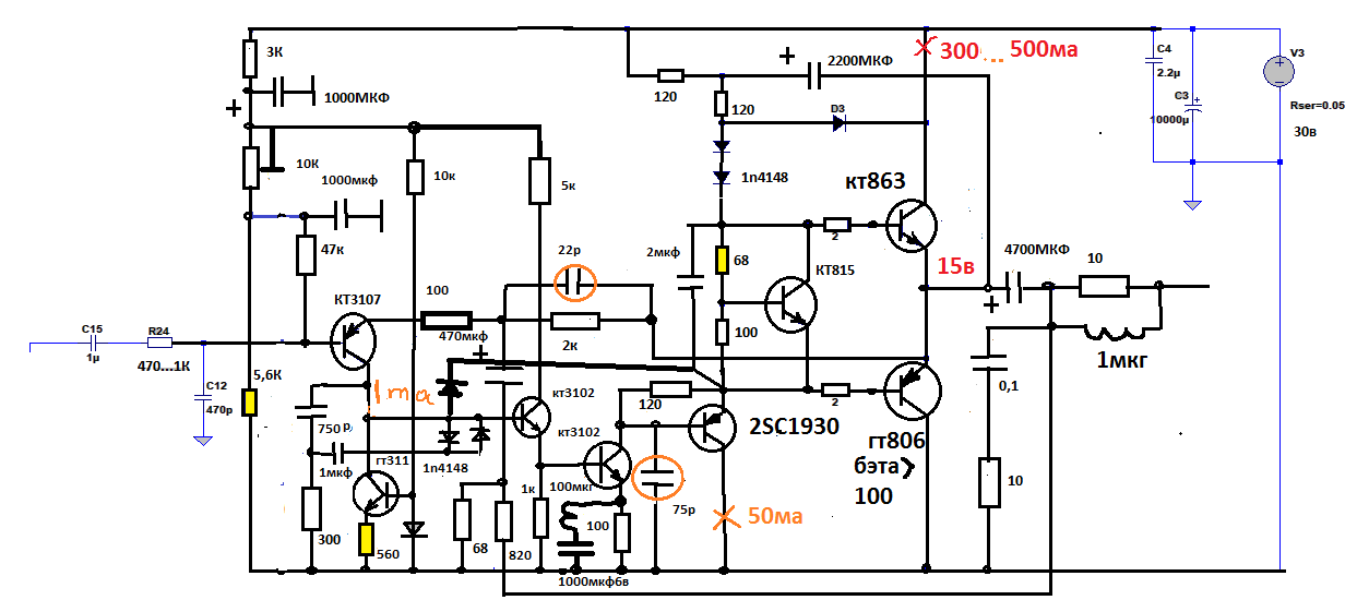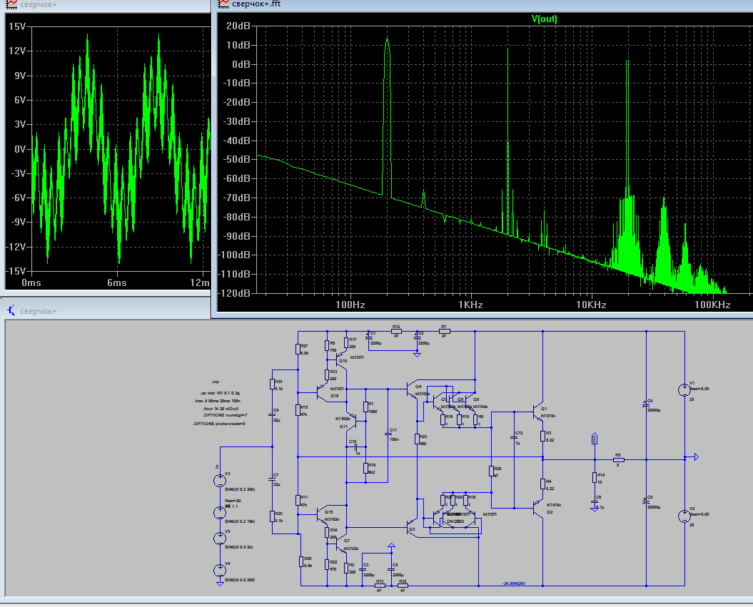 кстати попрробуй в симуле параллельно эмиттерному резистору Уна контур последовательный 100мкг+470мкф как тут,только в каждом плече