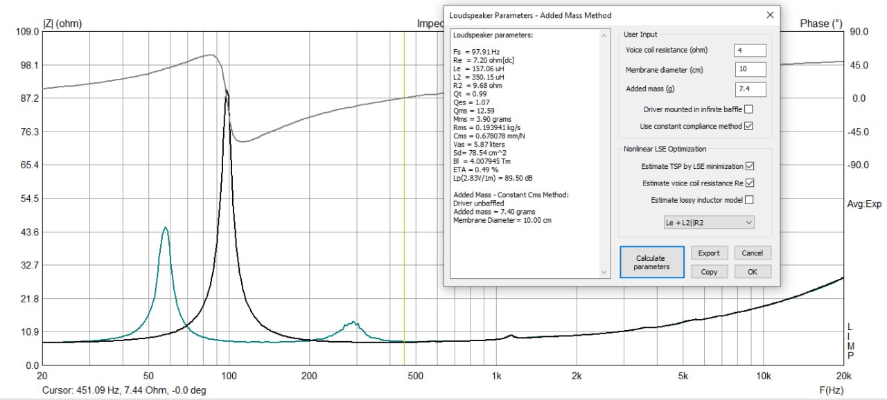 масса диффузора с подвесом 3.5г, масса диффузора 1.8г