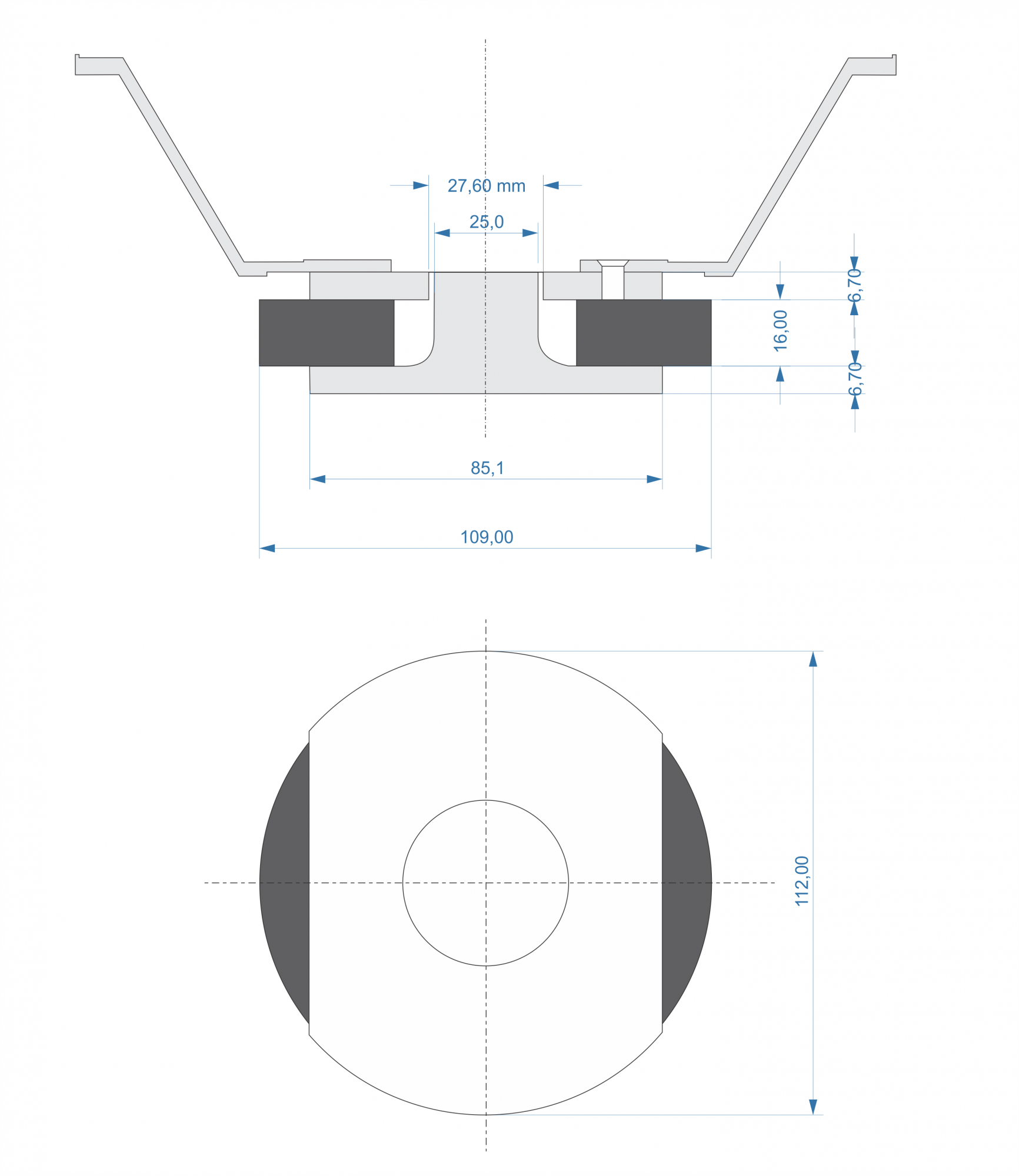 Верхниз фланец 6,7 мм. Можно сделать тоньше. Заодно и плоскость вывести.
