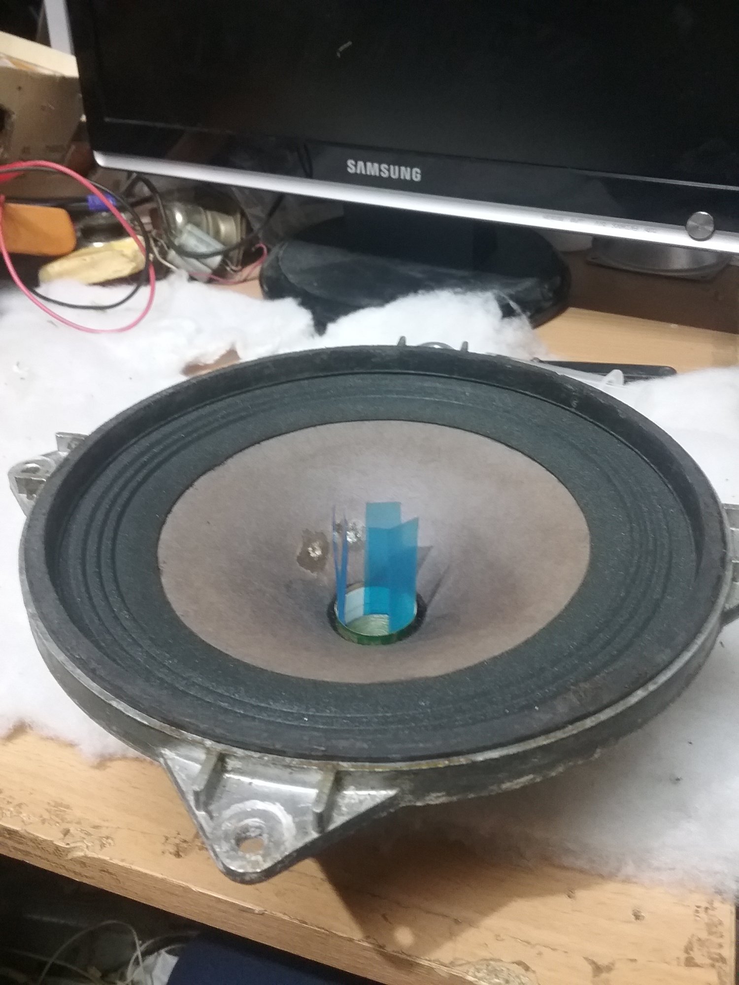 Хотел на корзину под центрирующую шайбу подклеить, да так увлекся сборкой что вспомнил про это только после установки на клей диффузора в корзину.