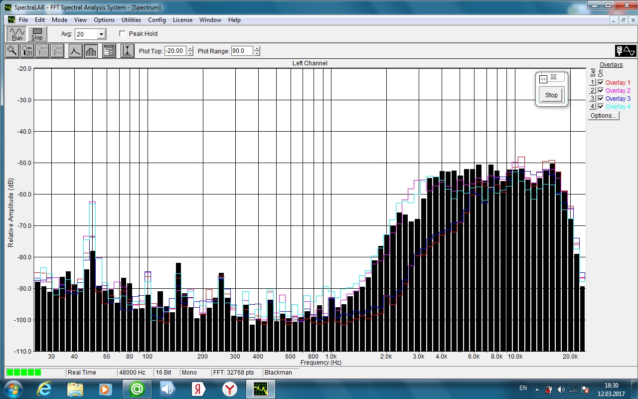 Внизу практически то же самое, что и в случае титановых подвижек. Я надеялся, что загадку поможет раскусить как раз АЧХ внизу.