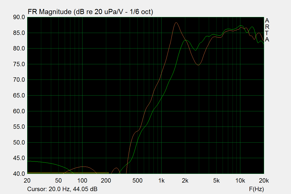 Ваша ачх нудно и скучно повторяет мою, снятую весной. Обратите внимание: участок до самых 4кгц- ровнее ровного. Что истинная правда. И это ещё не самое интересное. Самое интересное- прорисовка средины на этом участке совершенно шикарная. Пик на 4 кГц, оставшийся после завала на фильтре, красиво подчеркнёт срединку, акцентируя речь , а широкая направленность динамика позволит спокойно стыковать басовичок с любой пищалой, а не только с Визой TW70. Так что , вы на правильном пути.