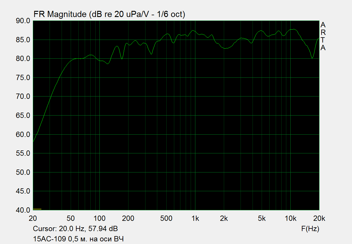 7) АЧХ акустики с родным фильтром, на расстоянии полуметра: