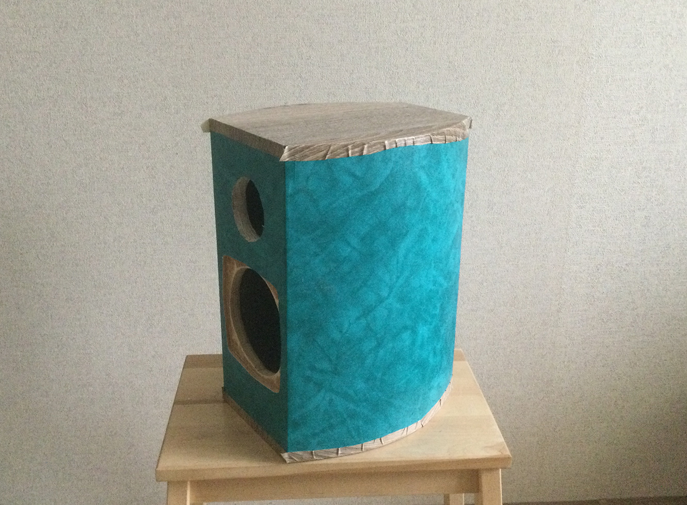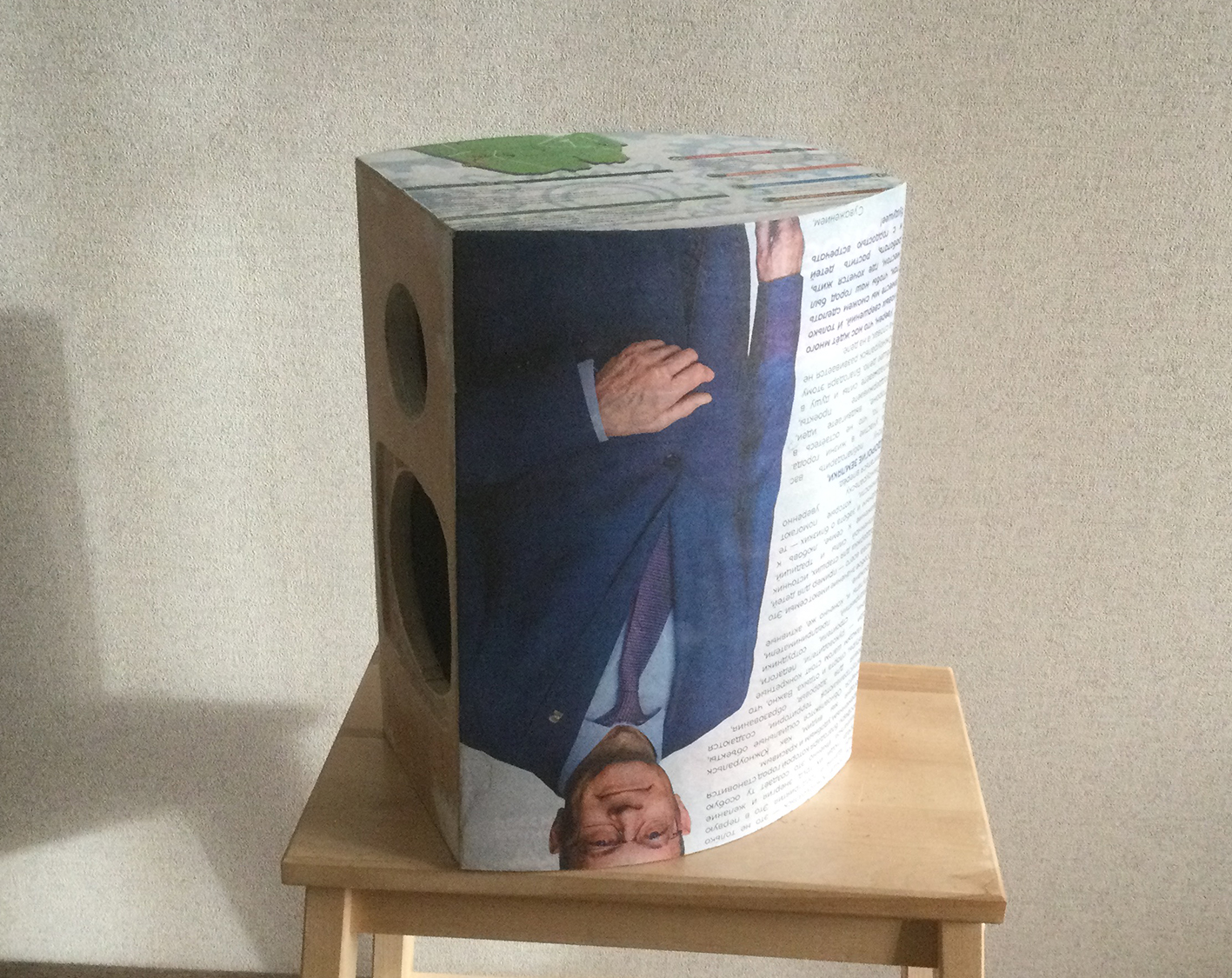 После шпаклевки и шлифовки обклеиваю газетой. Дает защиту шпатлевке и после высыхания выявляет дефекты. Следующий слой плотной бумаги (обязательно мочить, после сушки натягивается как барабан). У меня бумага под кожу. На ней можно потом пленку снять, если криво и приклеить снова.