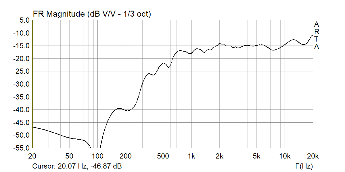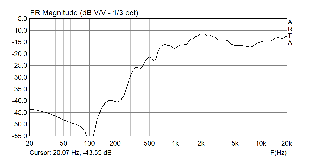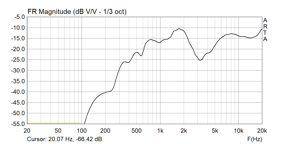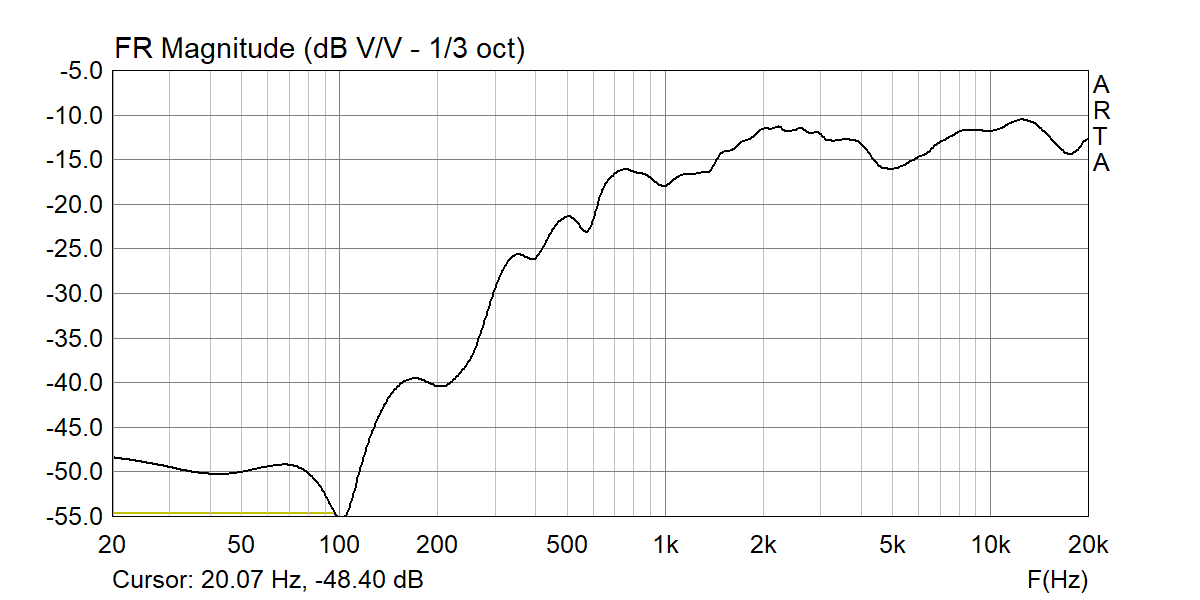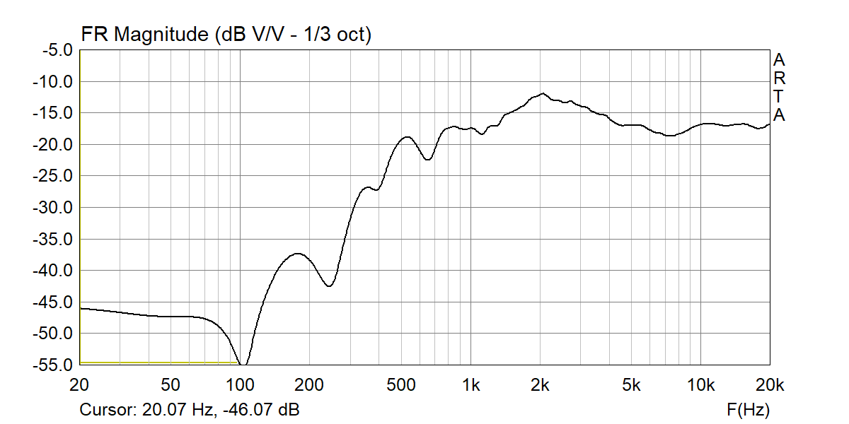 Смущает меня акустическая пуля у ВЧ динамика купольно-кольцевого типа. У нас такие ВЧ запрещены для прослушивания в ночное время. Похоже, что этот ВЧ динамик не любит рупоры и защитные сетки. А вот ткань акустически прозрачную приемлет.