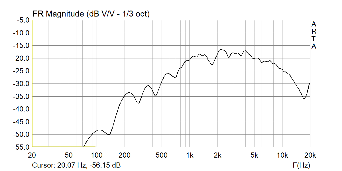 Если рупор ВЧ поставить прямо на динамик, то все не плохо, но как только с грилем - сразу яма на 2,5 кГц. Подозрение, что горло этого рупора не стыкуется с фланцем ВЧ.