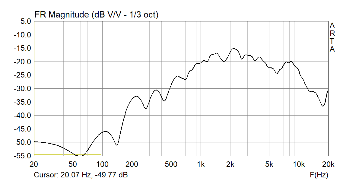 Измерил с грилем и без рупора, затем в гриль положил поролон, чтобы он был вокруг излучателя, не особо помогло: