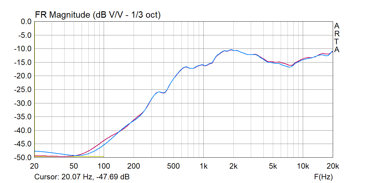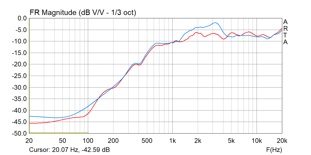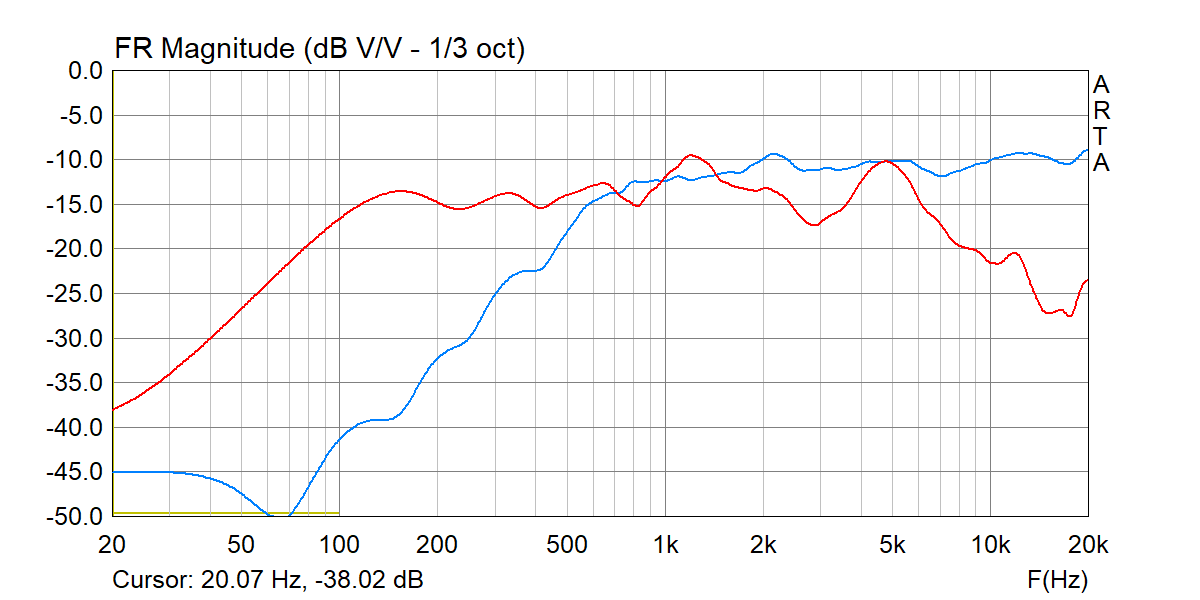 ВЧ 20 градусов вне оси, вторая картинка - по оси, 50 см, 10 мс