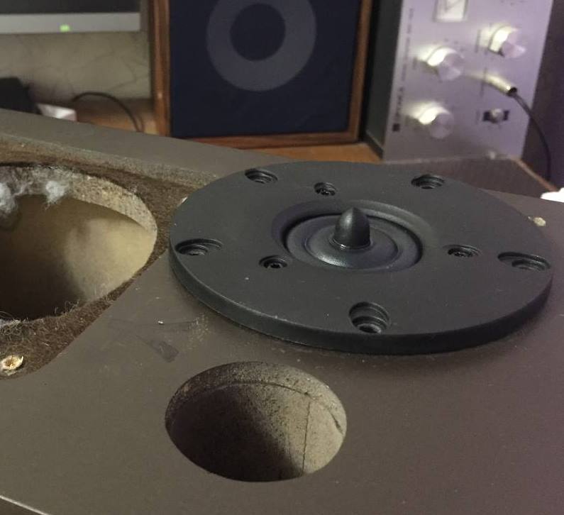Еще не полностью пристыковался к грилю, но с ним будет примерно так. Плюс над излучателем будет заводской рупор. И тут уже вопрос что будет с АЧХ, так как этот динамик любит, даже требует установку заподлицо с передней панелью.