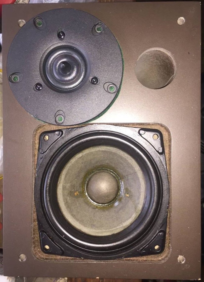 Положил гриль на ВЧ динамик, но отверстием НЧ:
