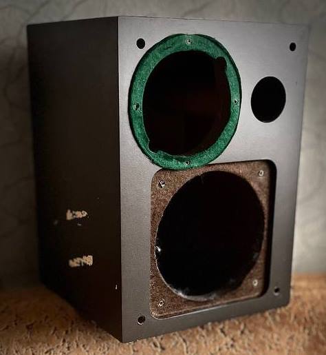 Назначение АС - установка на столе для ПК, по бокам монитора. Она придет на смену старой: https://ldsound.info/2-way-speakers-for-jbl-4312m-type-simple-copy/, которая немного больше размерами. Для новой АС приобретен корпус от RFT: https://ldsound.info/rft-b-3010/, его внешние размеры - 25х18х20 см, а внутренний объем почти 5 л. Это корпус с ФИ, но никто не помешает сделать из него закрытый ящик.