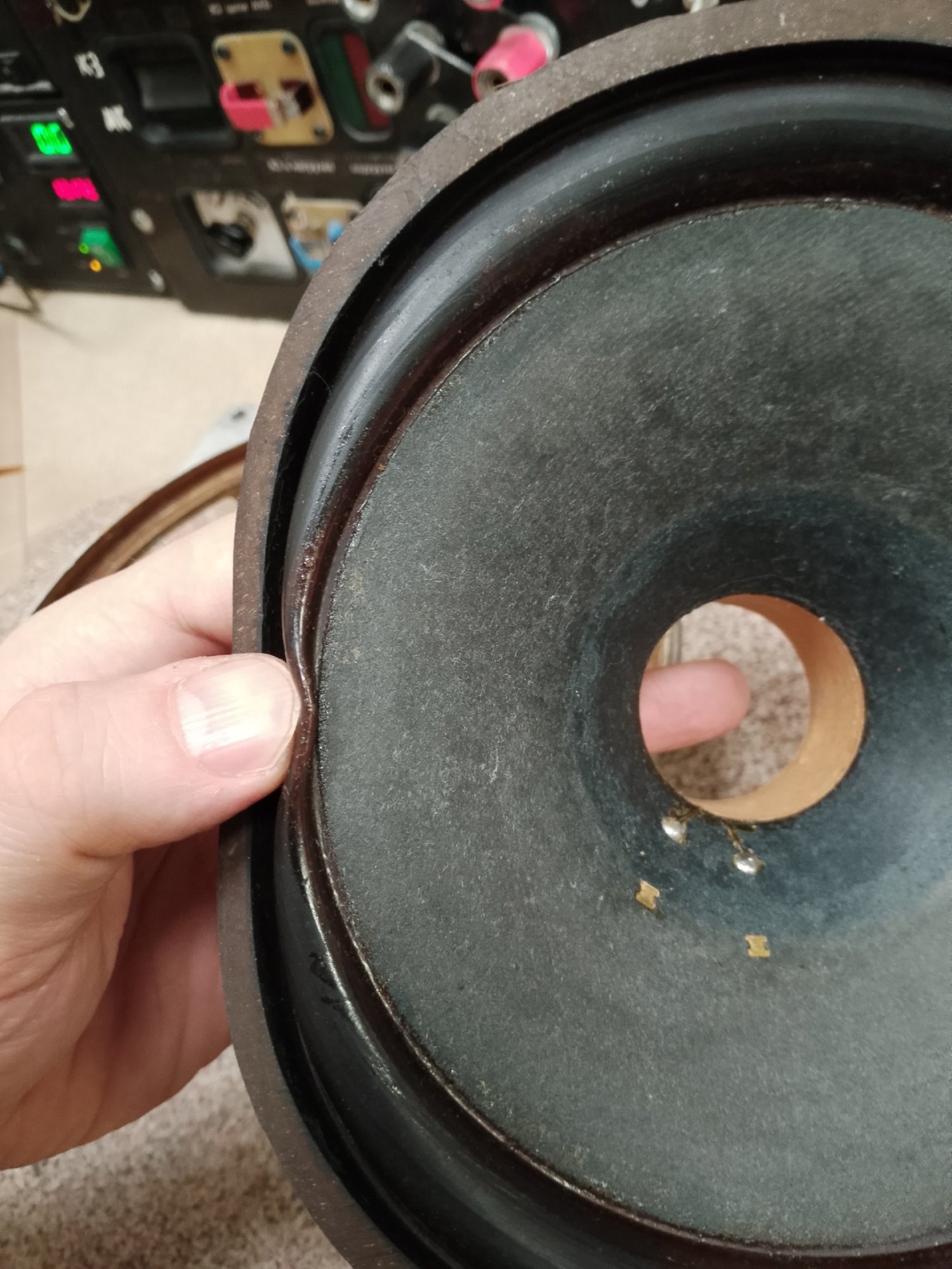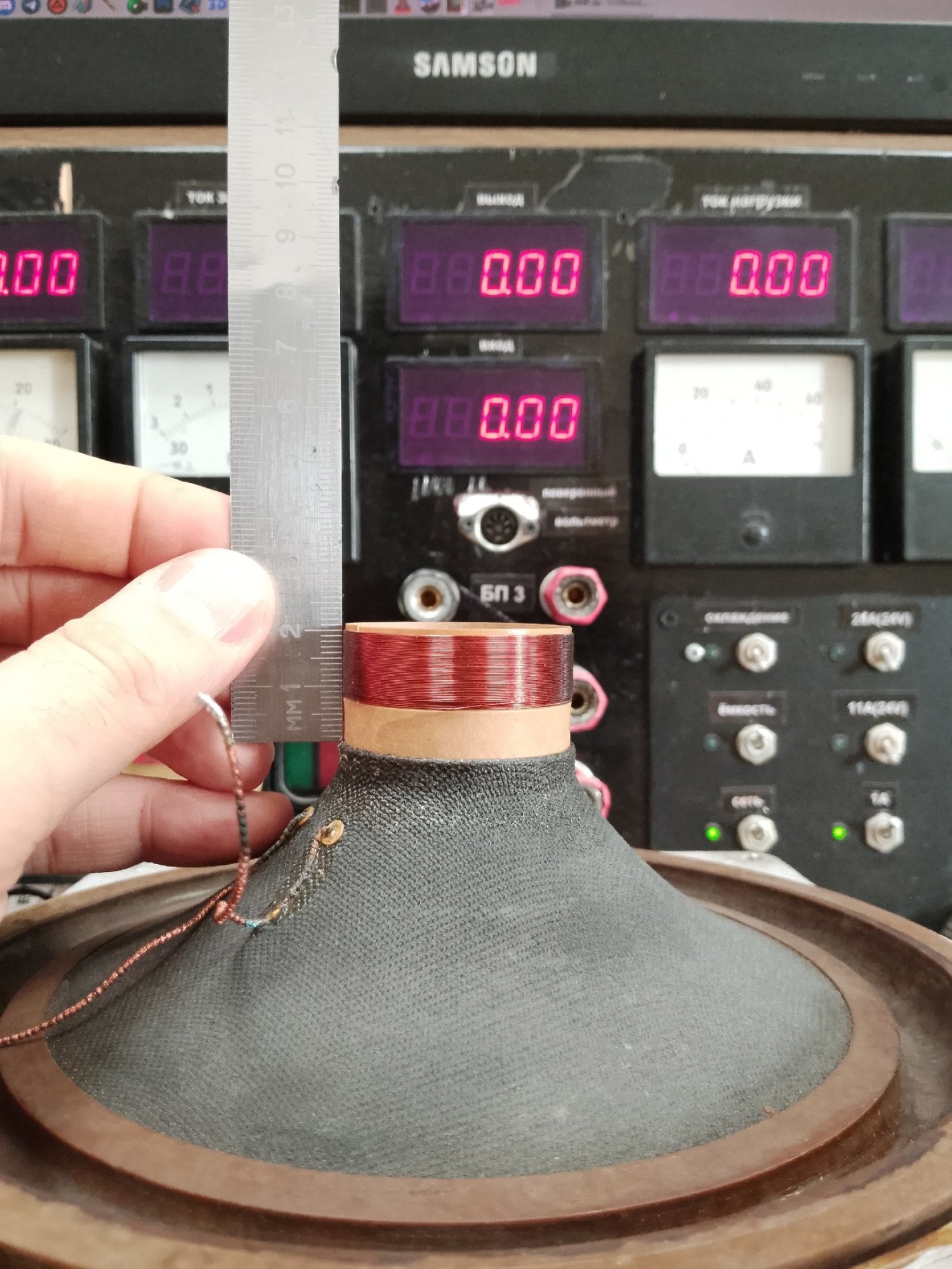 Обе цепляли керн, каркас чем ближе к диффузору тем больше сужается. Наверное можно отцентровать более менее, но кажется проще будет намотать новые, для большой амплитуды хода подвижки, лучше пусть зазор побольше будет, хотябы 0.2мм между керном и каркасом.