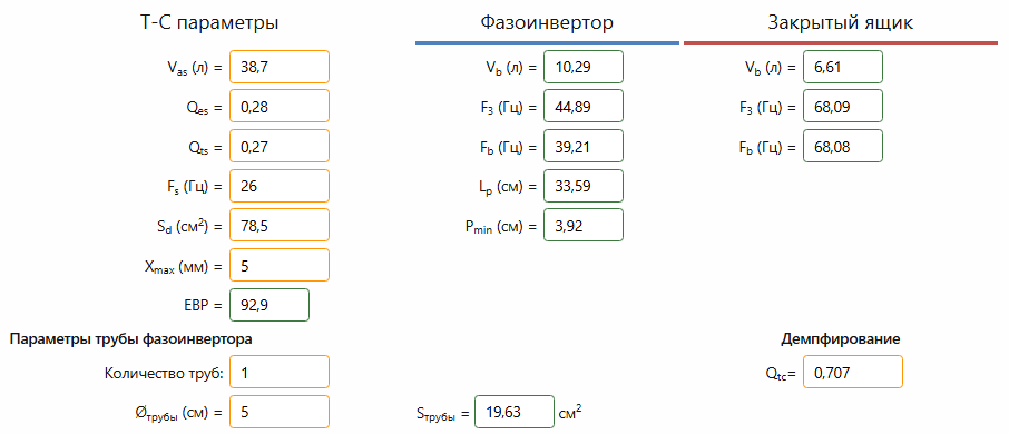 Вскрывать готовые ас не хочу, так как головка крепится изнутри, а доступ только после отклеивания ПИ. Можно только измерить импеданс готовой АС. Как появится время сделаю и дополню в отчёт.