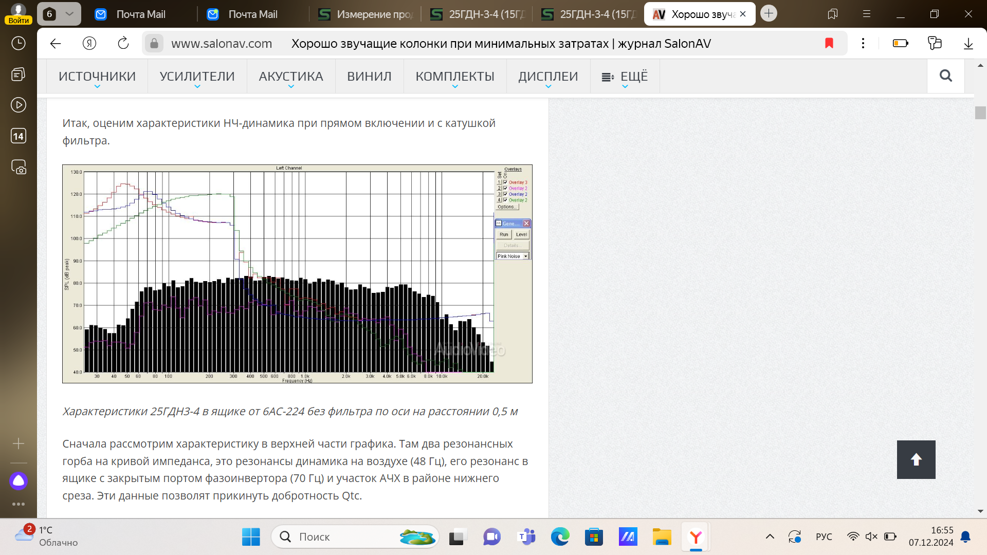 для не имеющих возможности посетить сайт журнала Salon AV держите реальную АЧХ динамика 25ГДН3-4 в 9 литрах
