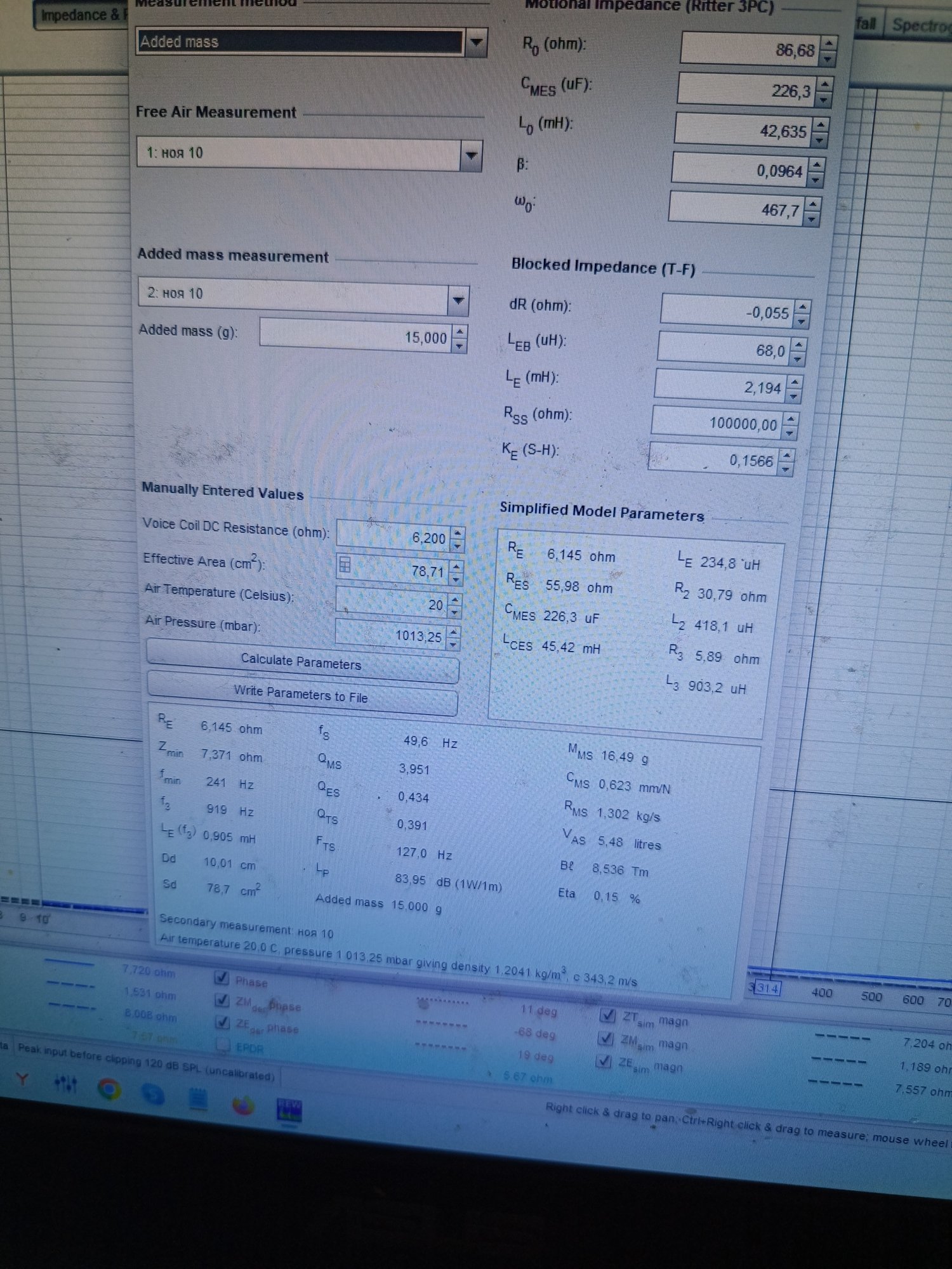 Добротность получилась на катушке 40 мм 0.36-0.38( 1 и 2 динамик), на катушке 25 мм 0.4-0.44( 1 и второй динамик)Это измерения после калибровки(выставления уровней сигнала до появления перегрузки по линейному входу ). В rew и limp измерило одинаково, с погрешностью около 1-2% между программами, что думаю несущественно Первые измерения были на старой звуковой карте а она уже была на последних издыханиях, сейчас даже не запускается, поэтому и такие низкие значения добротностей были получены.