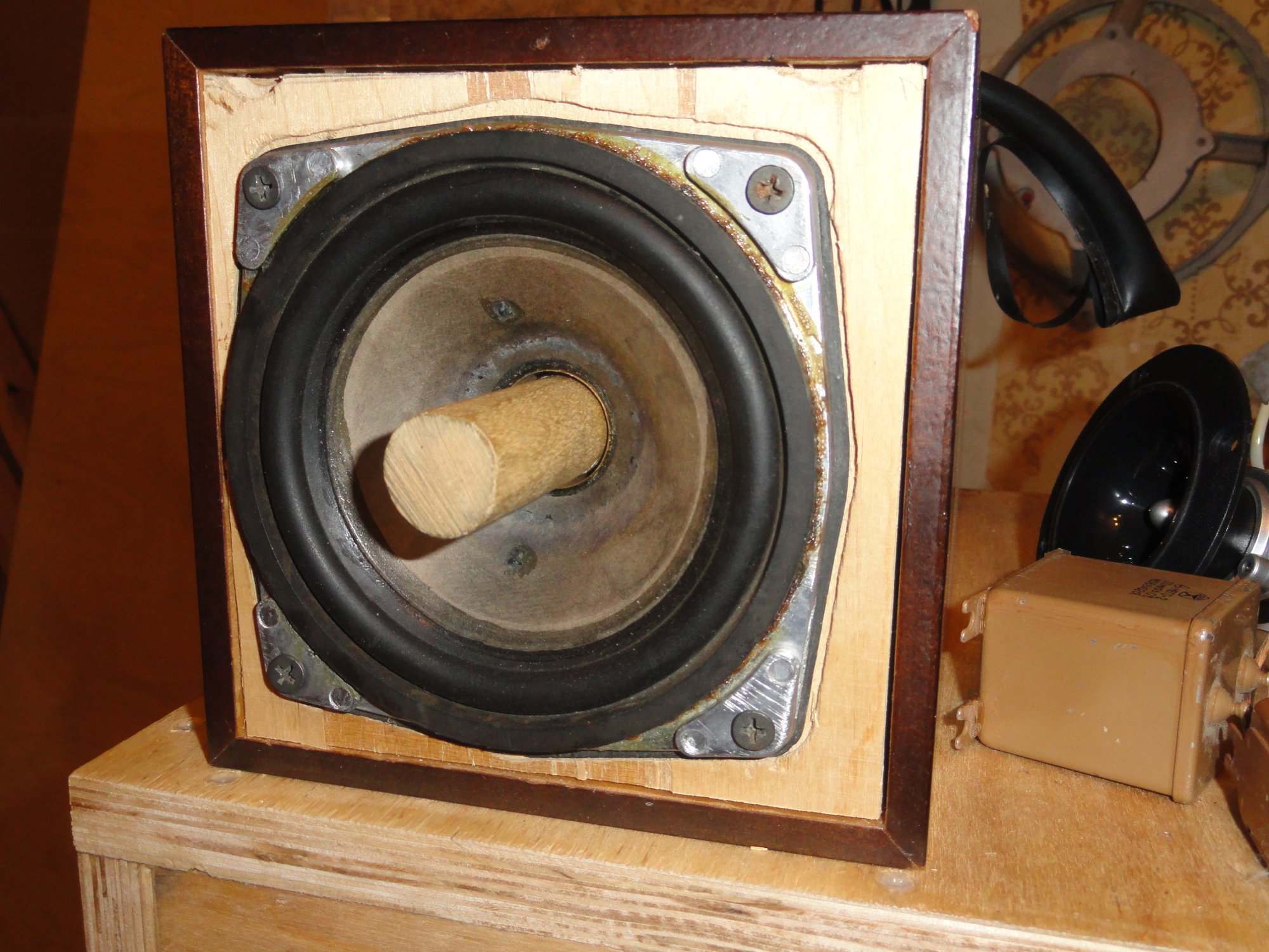 Это НЧ. Спереди такой же динамик уже тянет от 100Гц и выше через фильтр на 500мкф и катуху по памяти, на 4, 7 мГн. Импеданс не провален, стык ровный, звук классный.И задницами не толкаются рядом на одной доске.