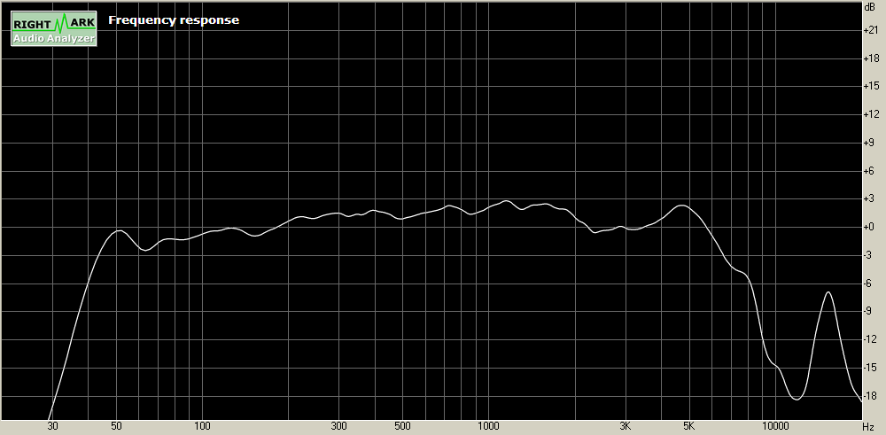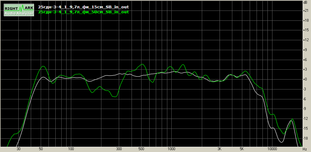 Ну и теперь подкидываем сверху 2гдш-16-8 через 3,9 ом и 1,5 мкФ последовательно. Микрофон передвигаем на ось ВЧ на том же расстоянии 50см: