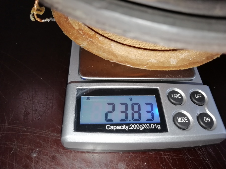 Вес подвижной системы до перемотки и зачистки поверхностей клеевых швов 23,83 грамма