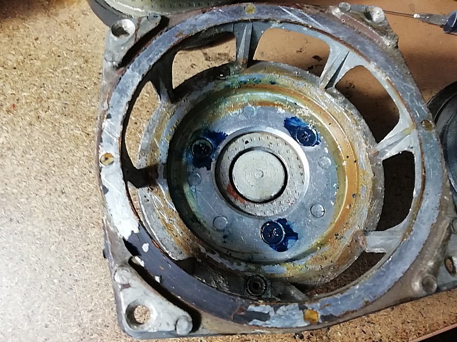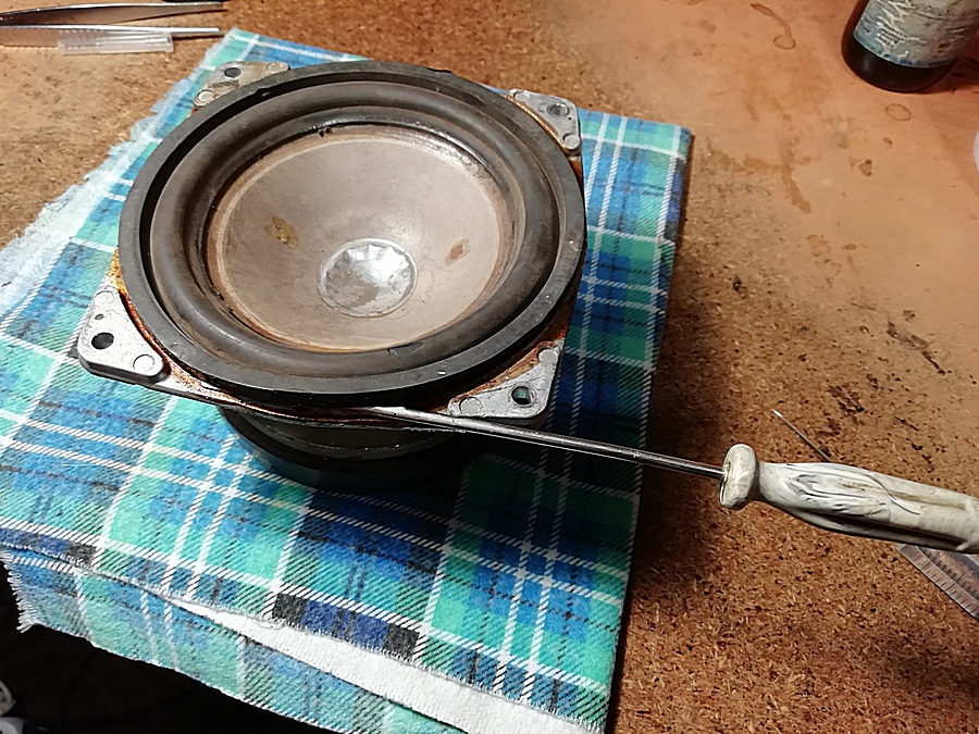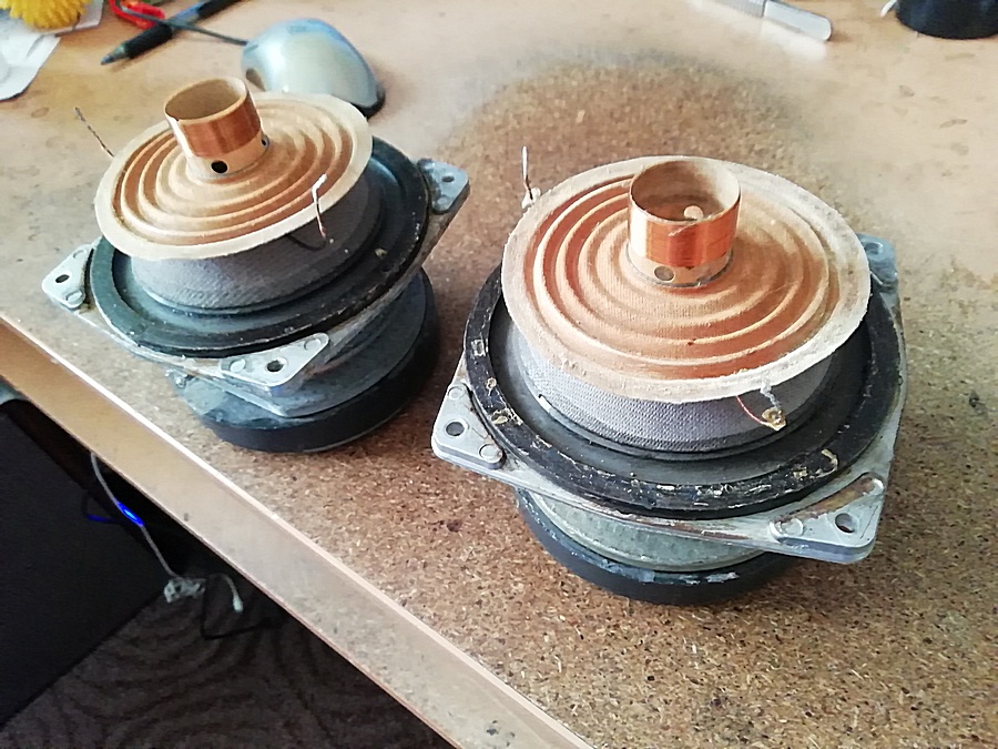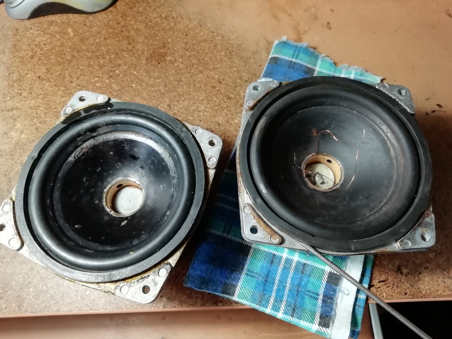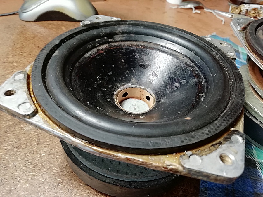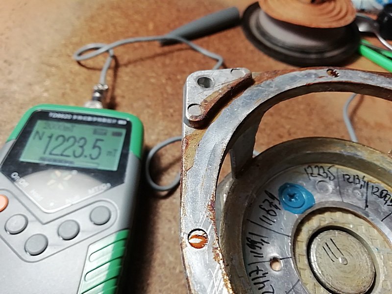 Если ещё железо 3-5мм на противомагнит положить, индукции будет ещё больше в зазоре.Собрались у меня все четыре динамика и все, в разобранном состоянии