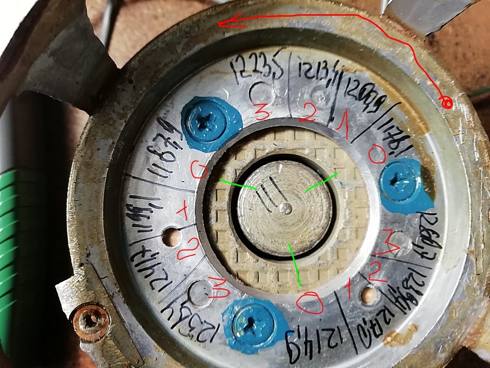 Индукцию измерял в трёх точках. Ориентиром служили крепёжные болты. Щуп платой скользил по поверхности керна, датчик повёрнут в сторону магнита. Головки пронумеровал: № I, № II, № III, № 0.