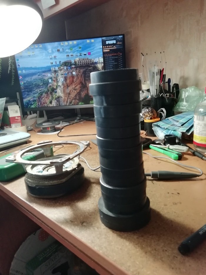 Чтобы смотреть что слева, что справа - нужен хоть какой-то , но щиток размером с будущую переднюю панель. Еще желательно "притопить" фланец в панель на глубину оного. Либо сгладить ступеньку синей изолентой.А потом где то удалось мне раздобыть "пол ведра" 6ГДВ-2, условия те же, 10мкФ и 1м