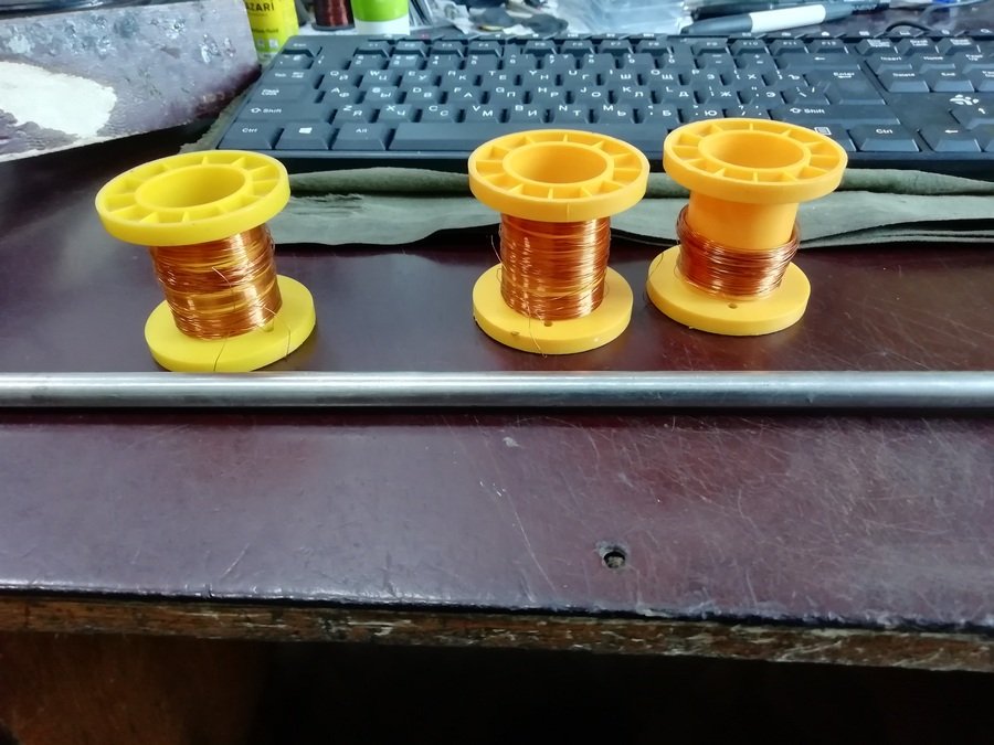 для намотки на них нужного количества провода. Точно так же как с трёх "бобинок" производилась намотка сразу в три, будет производится и с них. На третьей сколько останется провода - столько останется. Общее сопротивление этого провода 76 ом. Стараюсь всегда сохранять начальный вывод запаса провода на каркасах. Измерил и знаешь на сколько динамиков тебе хватит остатка.