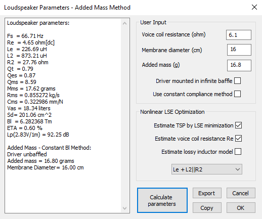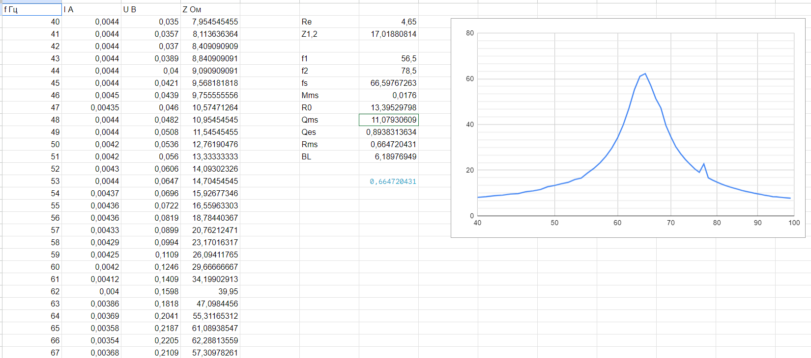 Еще раз. Ответ: расчетные значения получены по Вашему расчету, у Вас же на сайте. У меня в таблице они точно такие. Далее - Limp выдает результат на основе двух кривых импеданса, это намного больше чем просто знать длину провода в зазоре и BL. Напомню, что программа считает по тем же формулам что и наши калькуляторы, только у него есть доступ к паре кривым, к которым у нас этого доступа на этапе расчета нету. Если внимательно посмотреть, то Fs, Cms, Mms, Vas, Re совпадают, а BL и как следствие Qes, Qts нет. Конечно тут можно сослаться на программу, что она не верно считает, иногда уменьшает BL, а иногда увеличивает. И я бы не спорил, обзывая всех дилетантами а разобрался.