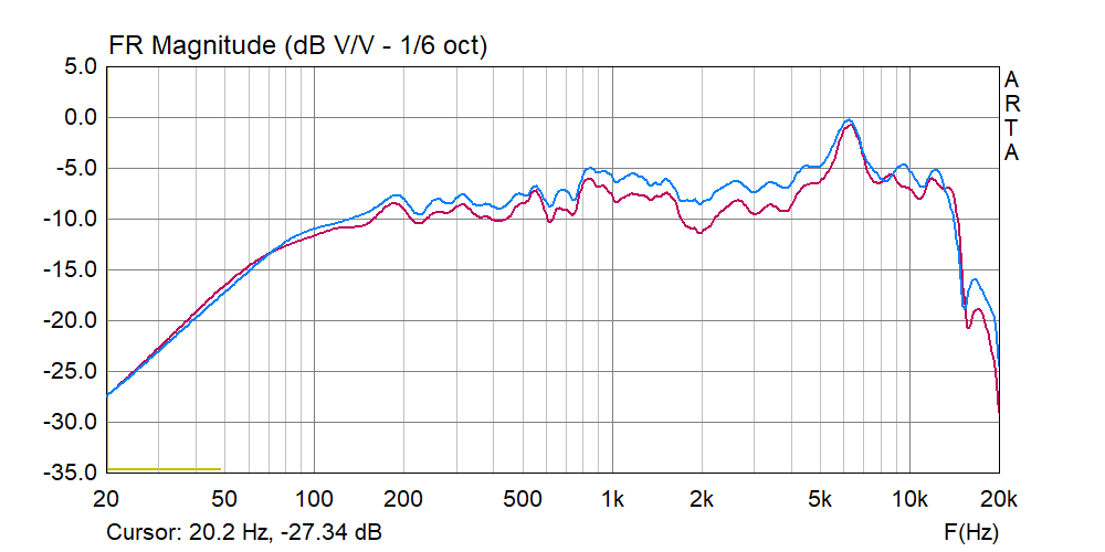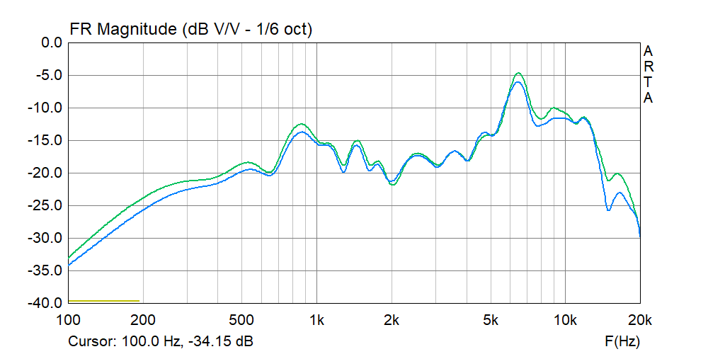 Значит всё печальнее. Шиш на 6...7 кГц не нравится - это сибилянты и шкворчание. Когда я воевал с наушниками Аксельвокс, давил именно эти частоты. Подъём в области 10 кГц тоже неплохо. Кстати, надо взглянуть что будет под углом, может весь верх станет ровным кроме 6 кГц , а на него натравить контур.