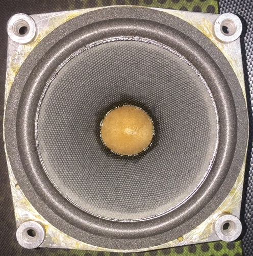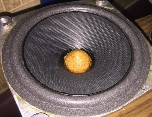 Поискал и еле нашёл. Динамик Mission 6.5 дюймов переделан, вот снимок в ЗЯ вблизи (для себя написал, без расстояния, скорее около1 см, но может и 5)