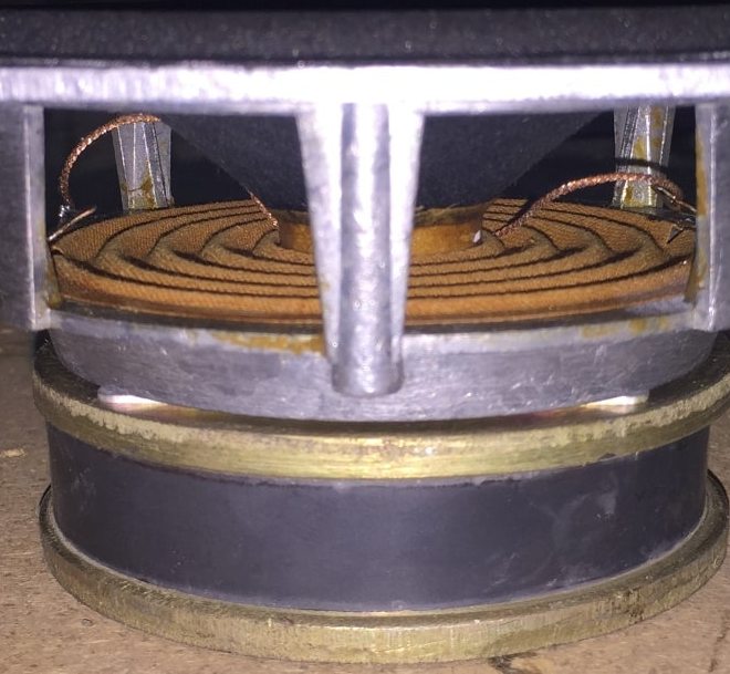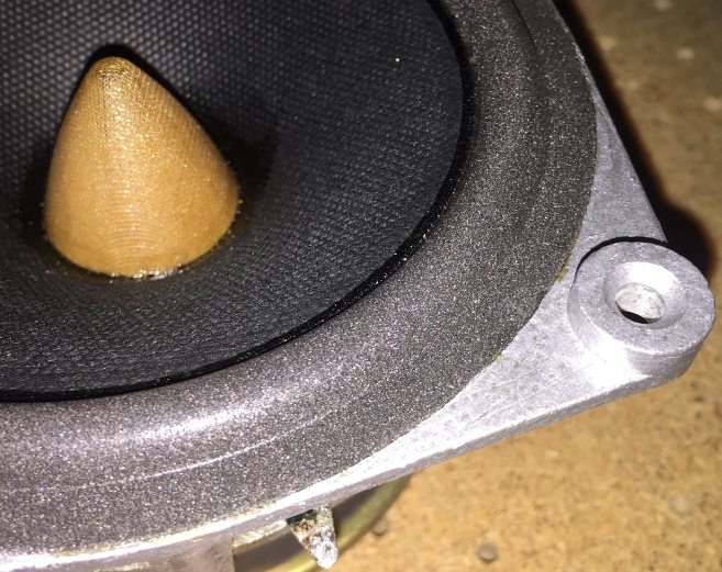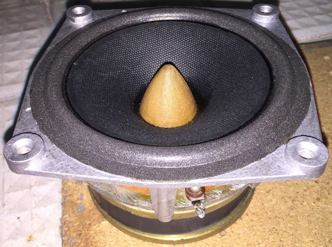 Колпачок из пивного донышка, диаметр 40мм.при большой громкости,,пердит,,.когда стояли тканевые колпачки,их втягивало внутрь.без колпачка свистит из зазора.при небольшой громкости всё нормально.думаю вентиляция как на 25гдн3-4 нужна.