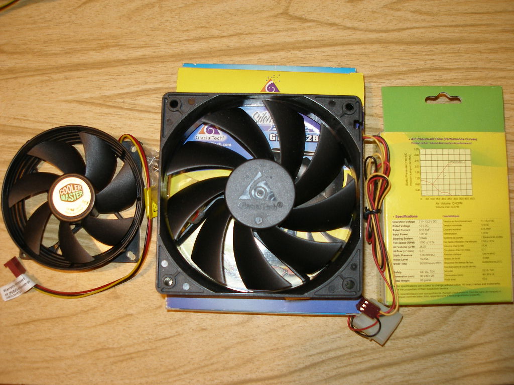 Как раз так сделано у меня на F5, диаметр, кажется, 92 мм под радиатор, ещё лучше 120 мм. Вернее, я повторил конструкцию моего заочного друга из Австрии (поклон ему) - большущие радиаторы, как у него, которые у него работали не один год без вентиляторов, но мне было стрёмно - градусов 70...75, поэтому поставил большие и очень медленные вентиляторы, я успокоился, стало, наверное, градусов под 60...
