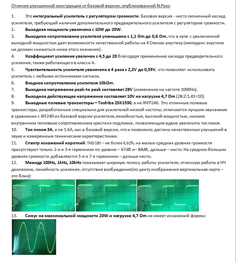 Это уменьшает выходное сопротивление и улучшает импульсные характеристики усилителя, при этом остаётся достаточно высокая выходная мощность (для усилителей класса А).