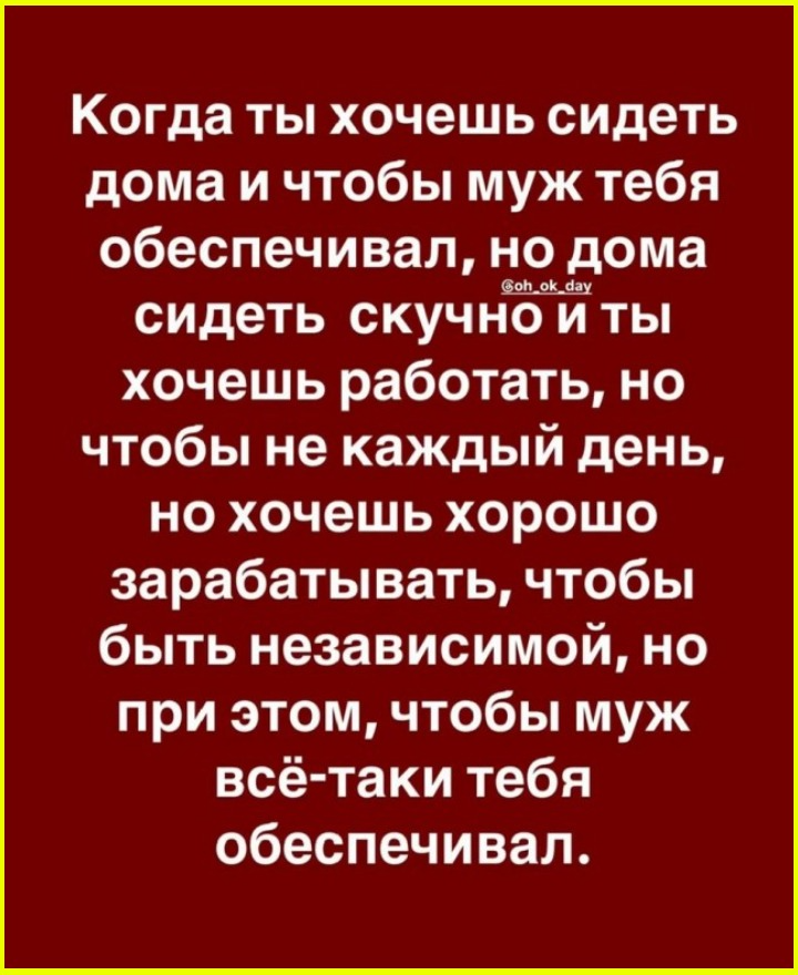 - Мне еще хуже. Моя думает, что она сейчас замужем за миллионером.