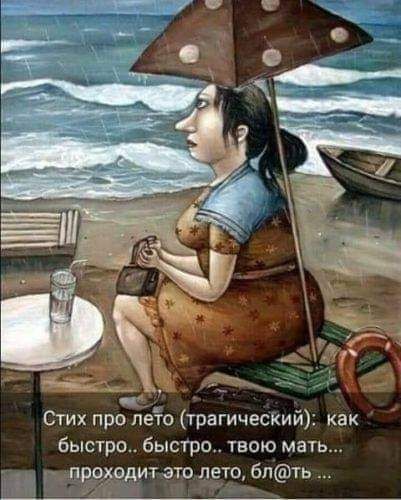 - Знаете ли, милая барышня, что в Геленджике лето никогда не кончается? Давайте вместе улетим туда! Там тёплая вода, фрукты и в море мы сможем плавать на плотике из какашки! И петь: "Нааа Маленьком плотуууу…"