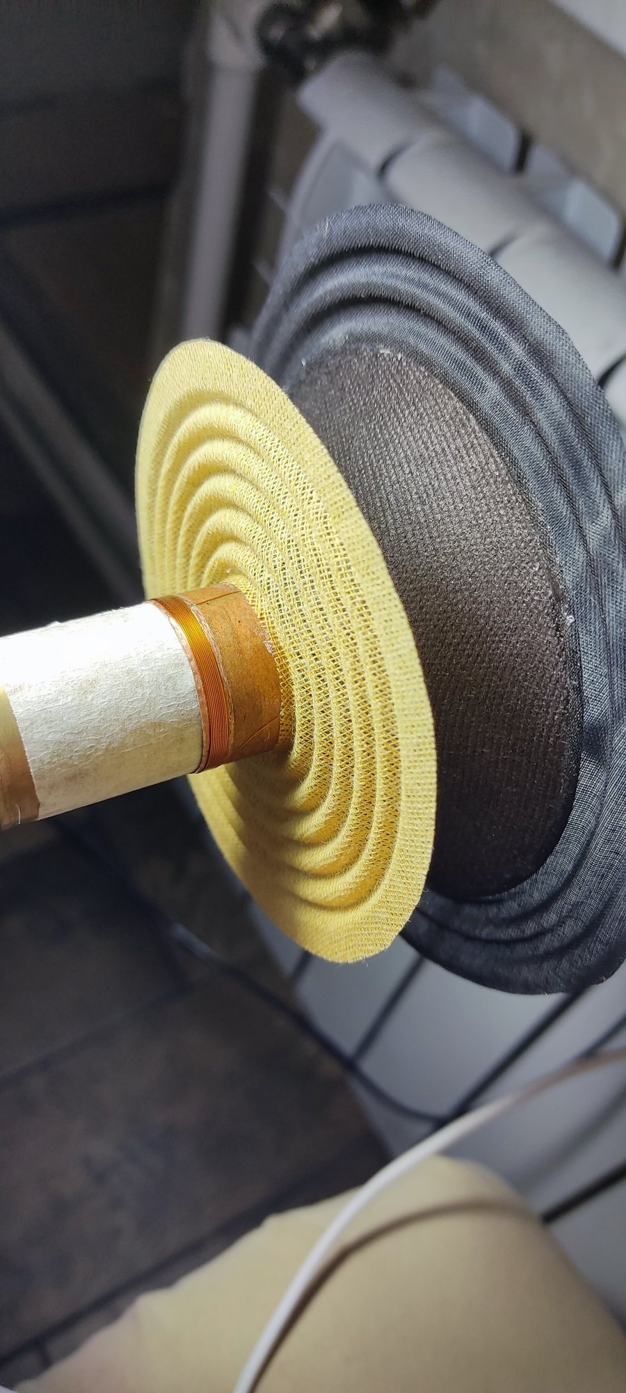 Каким боком тут не аккуратная сборка. Что в ней может быть не аккуратного, если потом динамик сунули в ржавый металлолом, покоцали магнит и проткнули отвёрткой подвес.